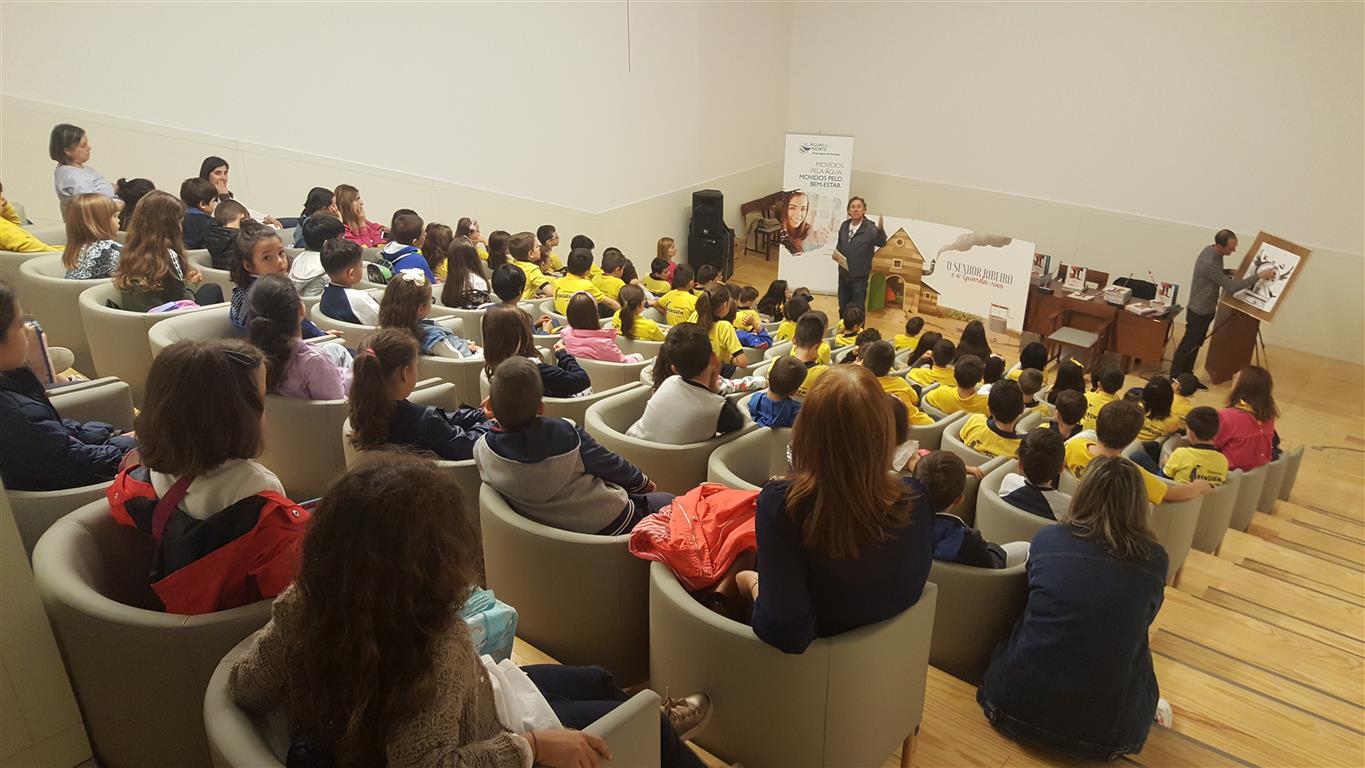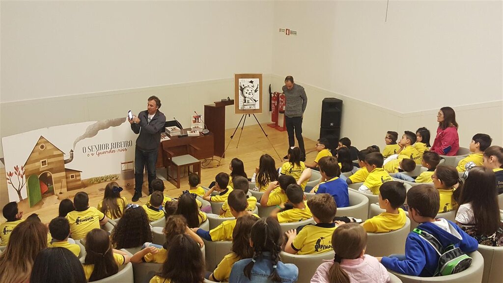 Mais de 100 crianças participaram na atividade, ouvindo com entusiasmo a história do "Senhor Ribeiro e o Guarda-rios” contada pelo próprio autor.