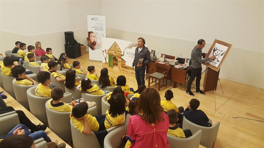 O Museu de Arte Contemporânea Nadir Afonso recebeu hoje uma hora do conto especial, com a presença do escritor Pedro Seromenho e do ilustrador Sebastião Peixoto, no âmbito da promoção do livro e da leitura, numa atividade organizada pela empresa Águas do Norte, em parceria com o grupo de trabalho das bibliotecas do Alto Tâmega (RIBAT), criado recentemente.