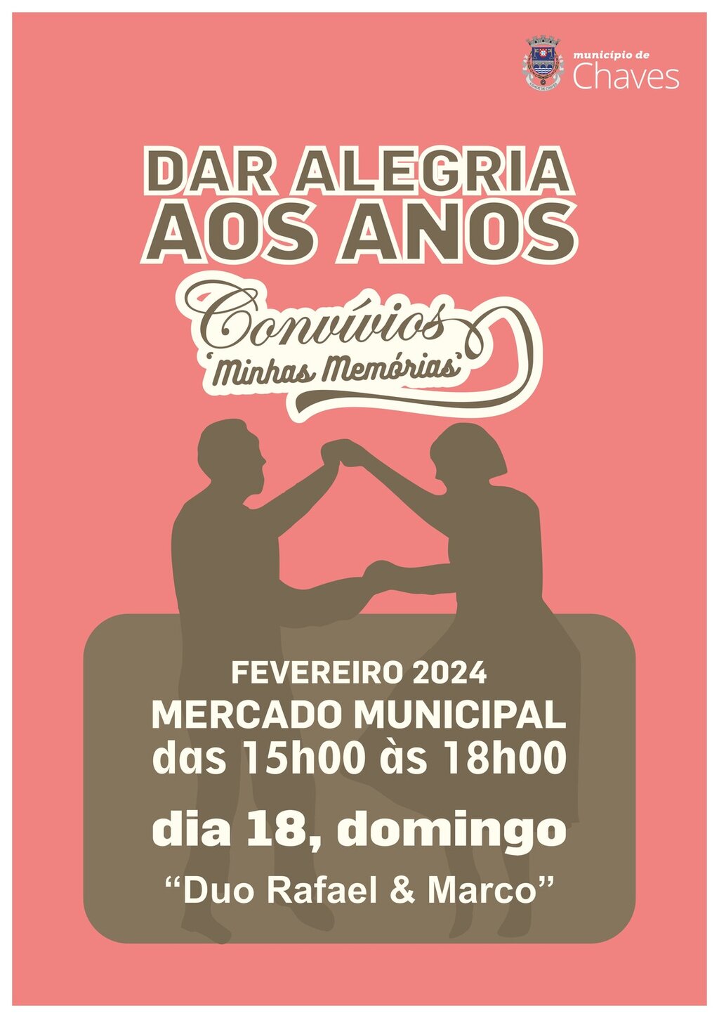 Sob o mote "Dar Alegria ao Anos – Minhas Memórias", o Município dá continuidade em 2024 ao projeto municipal de ação social que tem vindo a proporcionar convívios quinzenais, que contam já com grande afluência da comunidade. O próximo decorrerá no domingo, dia 18 de fevereiro, no Mercado Municipal.
