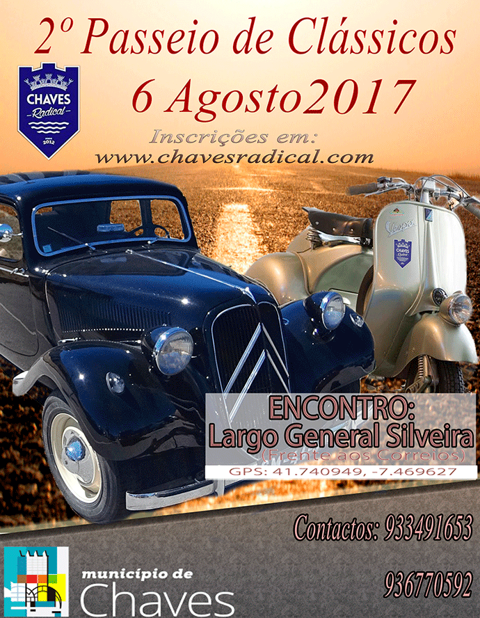Adicionar a calendário2017-08-06 16:02:002017-08-06 16:02:00Europe/Lisbon2º PASSEIO DE CLÁSSICOSConcentração no Largo General Silveira