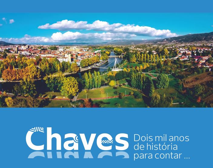 O mais recente trabalho do Grupo Cultural Aquae Flaviae é dedicado a essa gráfica identidade, executada em brilhante e belo azul-cobalto, e que se espalha pela cidade, bem visível, em painéis que demarcam espaços urbanos, em pavimento de praças e em veículos municipais que percorrem as vias do concelho.