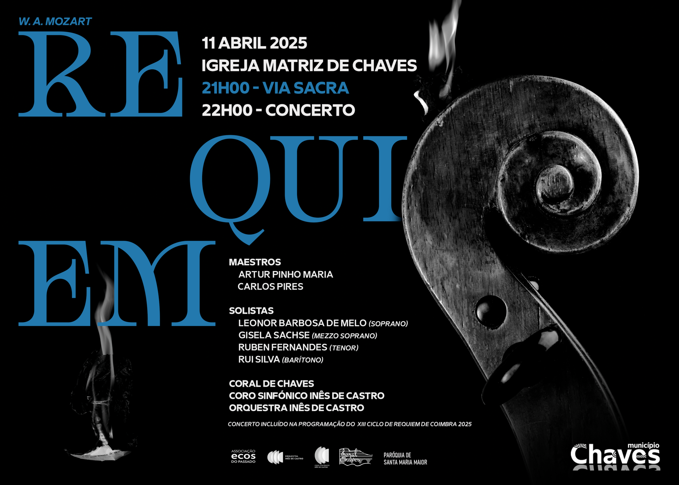 Incluída na programação do XIII Ciclo de Requiem de Coimbra 2025, a obra é interpretada pelo Coral de Chaves, Coro Sinfónico Inês de Castro e Orquestra Inês de Castro, sob a direção dos Maestros Artur Pinho Maria e Carlos Pires, e com os intérpretes Leonor Barbosa de Melo - Soprano; Gisela Sachse - Mezzo Soprano; Ruben Fernandes - Tenor e Rui Silva - Barítono.