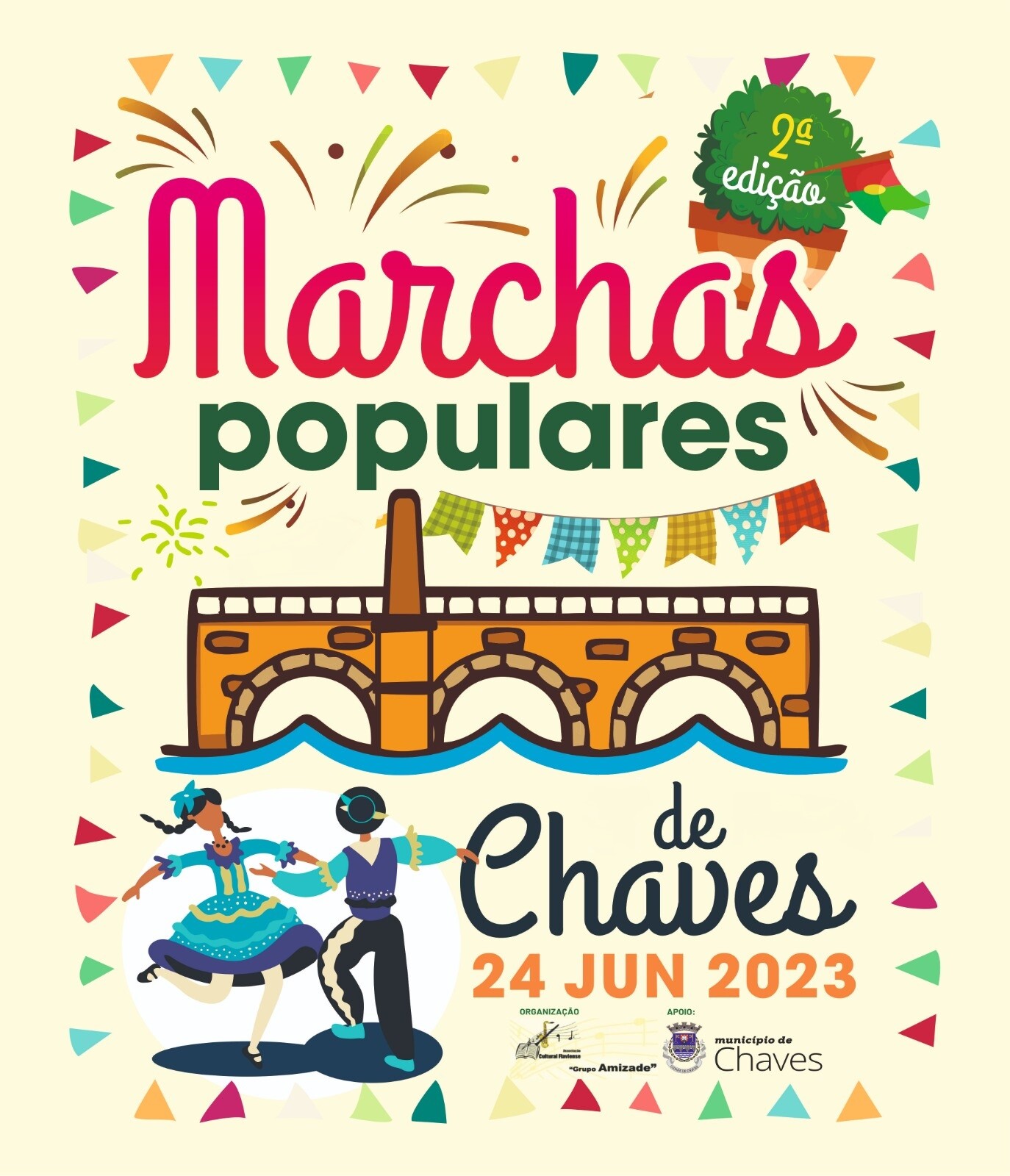 A segunda edição das Marchas Populares de Chaves envolverá as Juntas de Freguesia e associações locais do concelho. Cada grupo marchante será representado por um grupo de marchantes até 34 elementos, com coreografias alusivas a cada temática, recreando uma música em ritmo de marcha, com letra adequada ao tema, assim como o respetivo figurino.