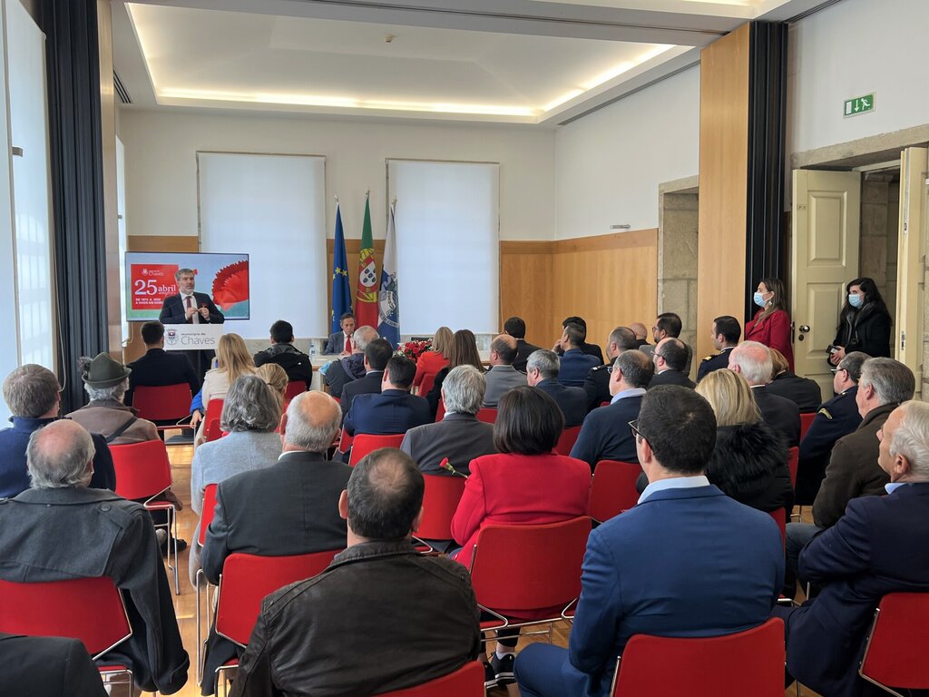 A cerimónia protocolar integrou a realização de uma Sessão Evocativa pela Assembleia Municipal, no Salão Nobre dos Paços do Concelho, que contou com as intervenções dos representantes dos partidos eleitos.
