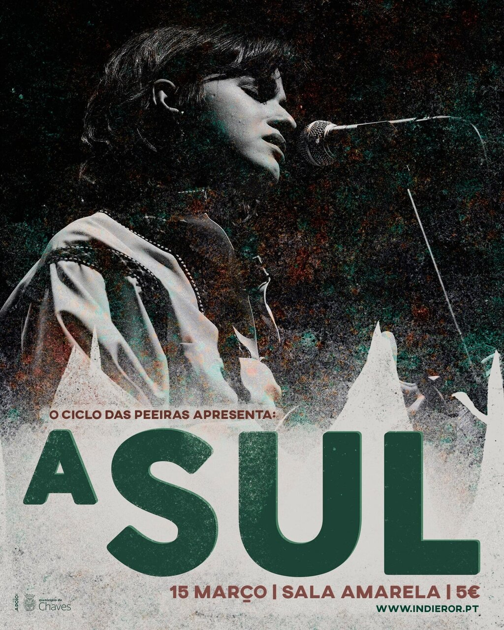 Vencedora da última edição do prémio Novo Talento FNAC (categoria Música), A Sul traz a sua voz doce até Chaves, num concerto que nos abraçará num cenário sonoro de construção única.