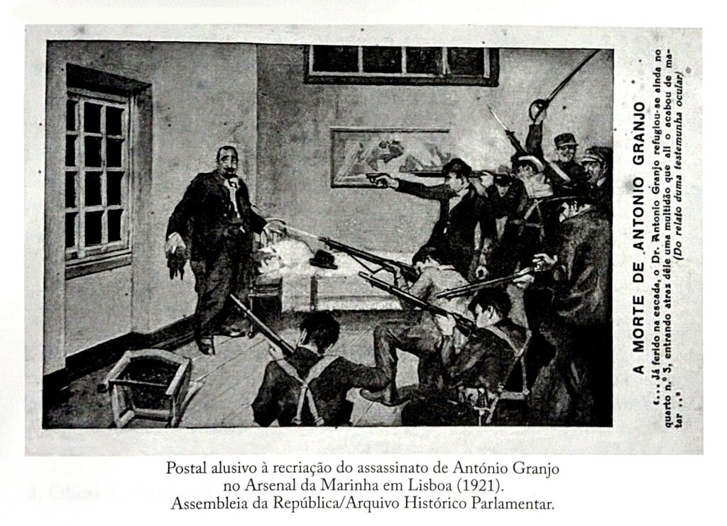 Seguiu-se a fuzilaria. Eram onze horas da noite. António Granjo encostado a uma das paredes, caiu varado por doze balas. Ensanguentado, corpo estendido no chão, os assassinos exultam o seu triunfo. Depois, ainda o corpo no soalho ensanguentado, um dos assassinos esmagou-lhe o crânio à coronhada. outro, um clarim da Guarda Republicana, atravessou-lhe o peito com o sabre.
