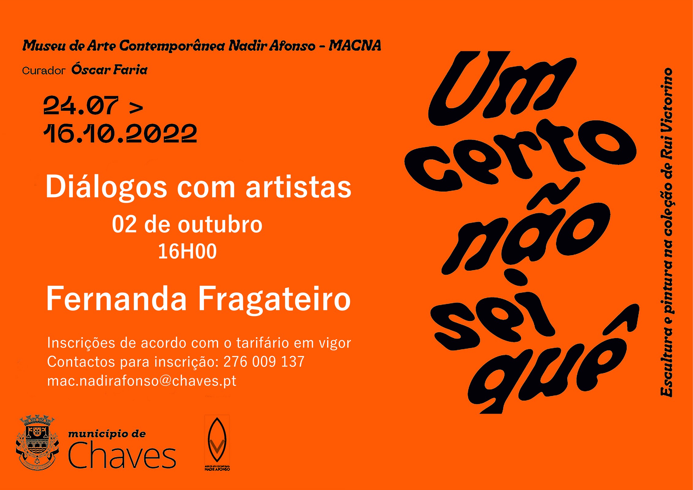 Inicia já no próximo domingo, dia 2 de outubro, pelas 16h00, o ciclo de conversas intitulado “Um certo não sei quê: diálogos com artistas”, desenvolvido no âmbito das atividades de dinamização da atual exposição patente no Museu de Arte Contemporânea Nadir Afonso – MACNA e que conta com a participação da artista plástica Fernanda Fragateiro.