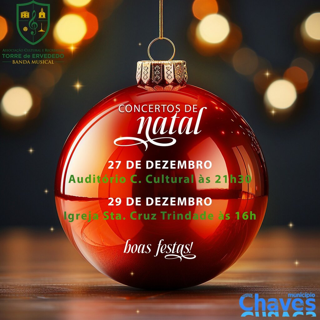 A Câmara Municipal, com o intuito dinamizar Chaves nesta época festiva, promove a arte e a cultura local com dois concertos filarmónicos a cargo da Banda Musical da Torre de Ervededo, sob a direção artística do Maestro Ricardo Lopes.