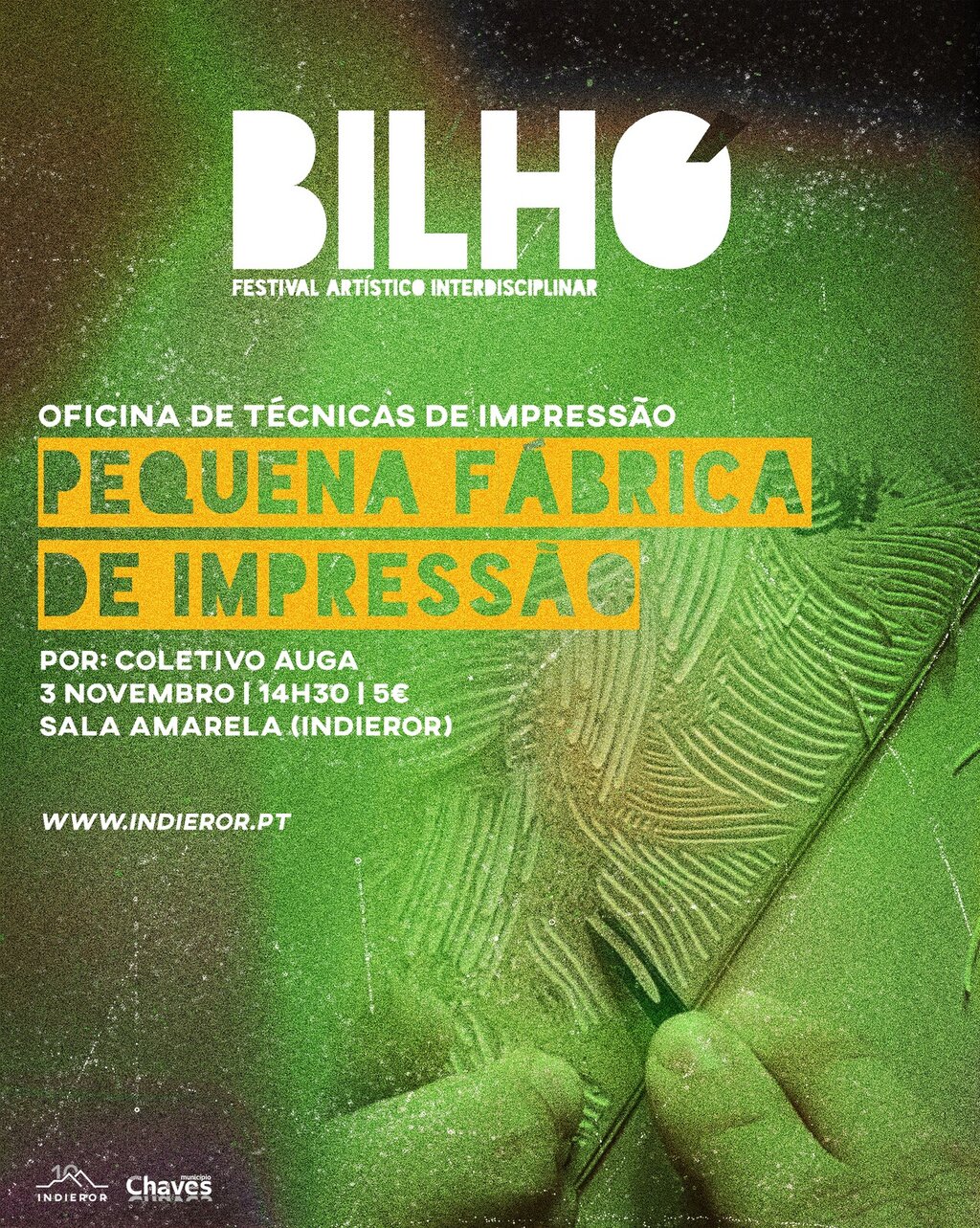 Integrada no Festival Artístico Interdisciplinar – BILHÓ, terá lugar no próximo dia 3 de novembro, a Oficina “Pequena Fábrica de Impressão”. Dinamizada pelo Coletivo Auga, esta oficina de técnicas de impressão é especialmente concebida para crianças dos 6 aos 12 anos e terá a duração de duas horas, das 14h30 às 16h30, na Sala Amarela (INDIEROR). Aqui, os participantes vão explorar o fascinante mundo da impressão.