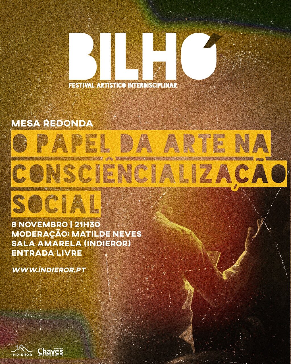 O Festival Artístico Interdisciplinar – BILHÓ, apresenta a mesa redonda “O papel da arte na consciencialização social”, a realizar no próximo dia 8 de novembro, sexta-feira, pelas 21h30, na Sala Amarela.