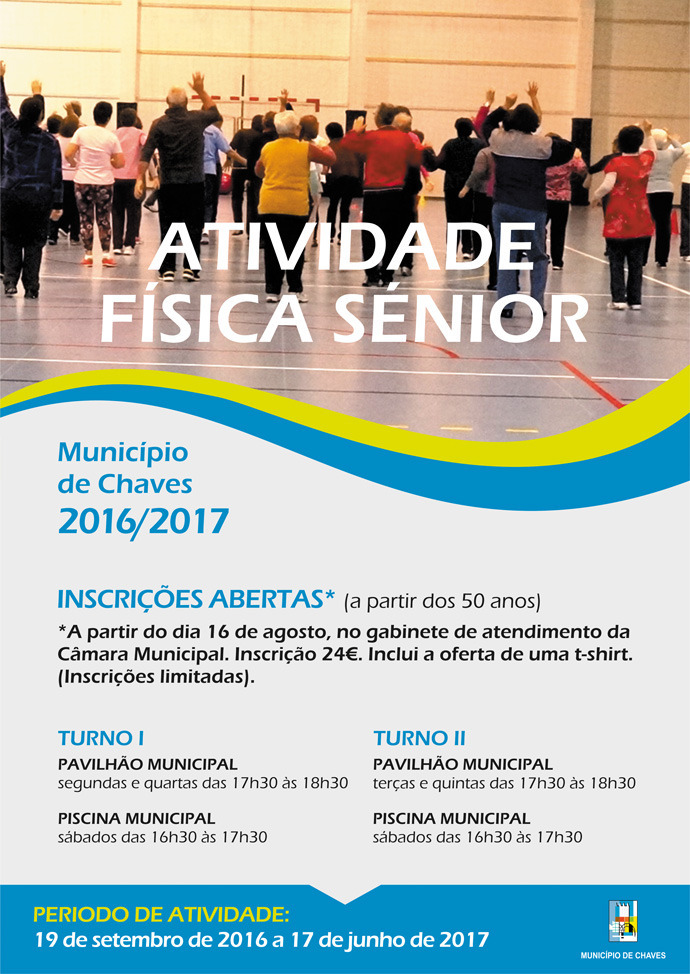 Contribuir para que a população sénior possa continuar ativa fisicamente e, em simultâneo, contrariar o isolamento a que muitas vezes está sujeita. É com este objetivo que a Câmara Municipal de Chaves tem vindo a promover ao longo dos últimos anos o projeto de Atividade Física Sénior, que consiste em aulas de ginástica no Pavilhão Municipal e de hidroginástica na Piscina Municipal.