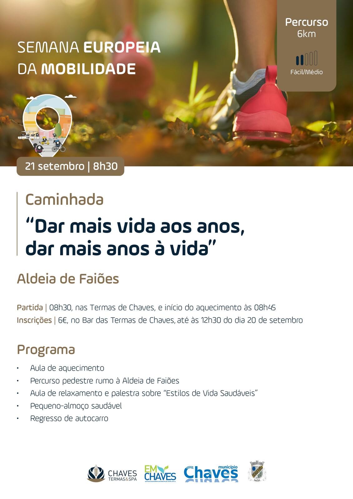 Integrada na Semana Europeia da Mobilidade, terá lugar no próximo dia 21 de setembro a última caminhada deste ano, promovida pelas Termas de Chaves. Serão 6 km até à aldeia de Faiões, numa manhã de convívio, desporto e animação.