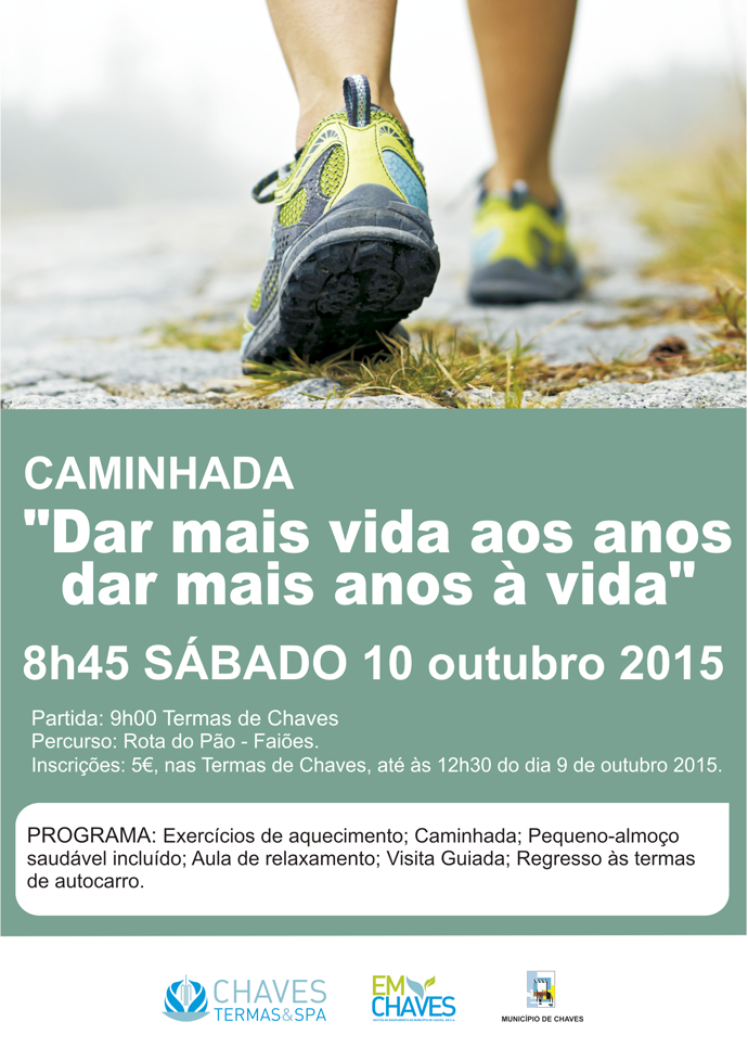 As Termas de Chaves vão promover mais uma caminhada, sob o mote “Dar mais vida aos anos, dar aos anos mais vida”, no próximo dia 10 de outubro (sábado) até à aldeia de Faiões.