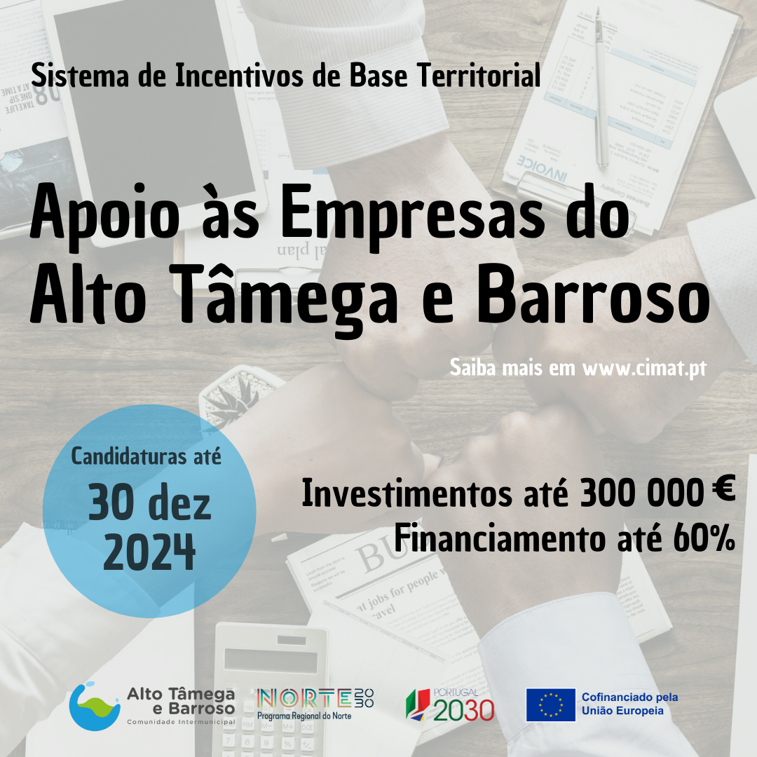 O Aviso NORTE2030-2024-50 Sistema de Incentivos de Base Territorial (IT) – CIM Alto Tâmega e Barroso, com uma dotação de mais de quatro milhões e quatrocentos mil euros é destinado a micro e pequenas empresas do território, que pretendam expandir ou modernizar da sua atividade e, que, ao mesmo tempo, contribuam para o emprego e para a modernização e resiliência das economias locais.
