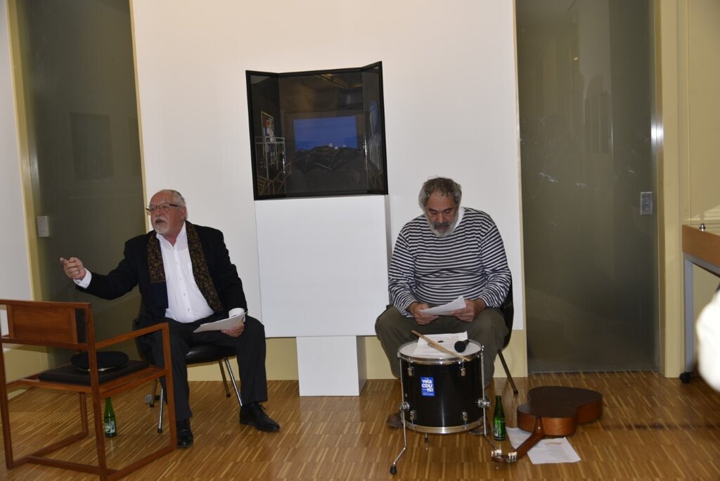 Após a visita ao espaço expositivo, foi ainda possível apreciar uma performance artística protagonizada por Manuel João Vieira e Filipe Crawford, de uma peça escrita por João Vieira, enquanto cenógrafo da RTP, sobre o equívoco que nos remete para “Macbeth”, na atualização do seu conflito para um público contemporâneo. Uma surpresa que permitiu “traduzir” as obras expostas.