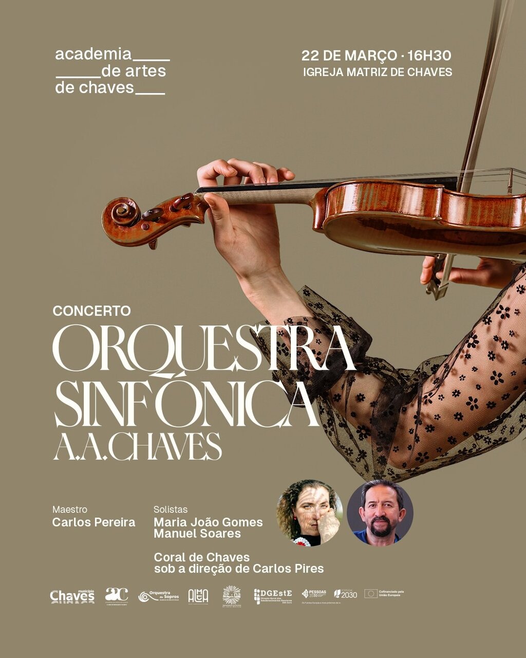 O espetáculo contará com a participação especial da Mezzo-Soprano Maria João Gomes e do Tenor Manuel Soares, que, juntamente com a Orquestra da AAC e o Coral de Chaves, proporcionarão um momento artístico de grande intensidade e qualidade.