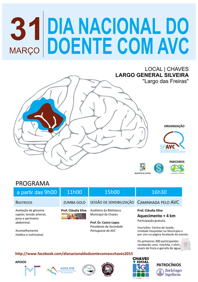 No âmbito das comemorações do Dia Nacional do Doente com Acidente Vascular Cerebral (AVC), no próximo dia 31 de março, a Sociedade Portuguesa do AVC escolheu a cidade de Chaves como a principal cidade para a promoção, a nível nacional, de diversas atividades de sensibilização à população para o AVC, refira-se, a principal causa de morte e incapacidade em Portugal.