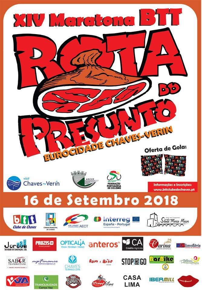 A XIV Maratona BTT Rota do Presunto, é uma organização conjunta do BTT Clube de Chaves e da Câmara Municipal de Chaves, com o apoio do Agrupamento de Cooperação Territorial Eurocidade Chaves-Verín (AECT).