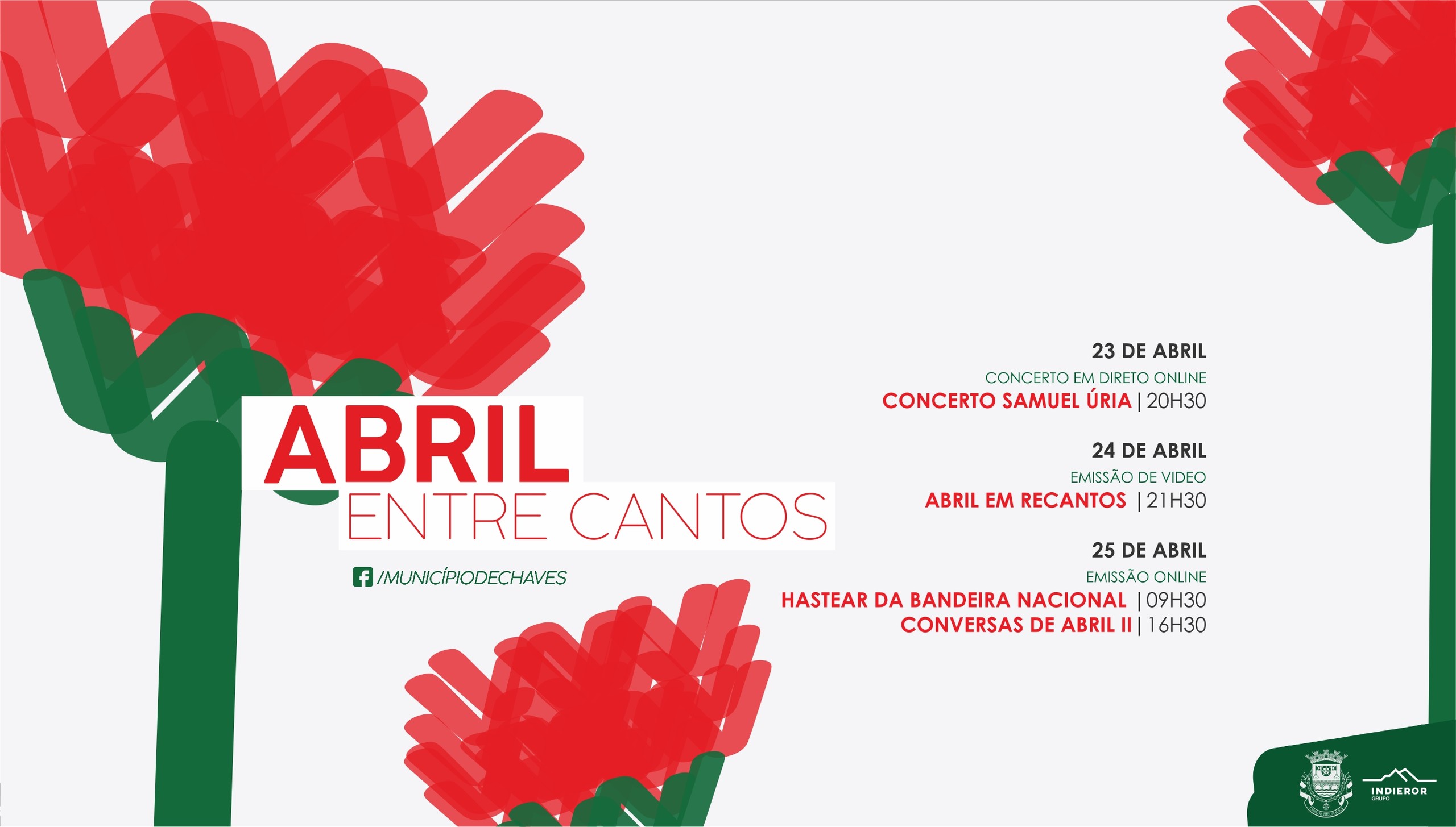 O programa cultural que decorrerá entre os dias 23 e 25 de abril será essencialmente online, permitindo uma participação mais segura e abrangente de toda a população. Nesse contexto, as comemorações iniciar-se-ão com a atuação de SAMUEL ÚRIA, pelas 20h30, no Auditório do Centro Cultural. O concerto do músico português de Tondela é o único que prevê a possibilidade de presença física de um número limitado de espectadores, que deverão levantar previamente o bilhete gratuito na Biblioteca Municipal.