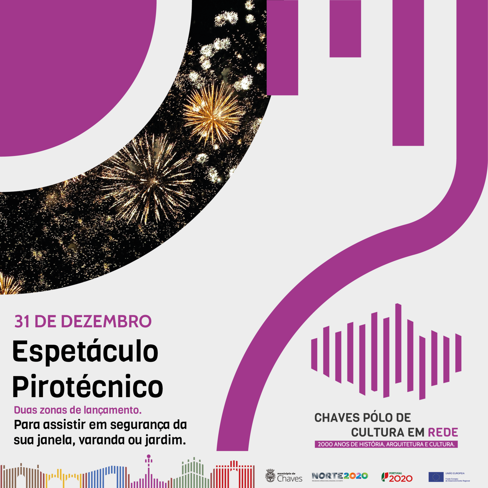 No âmbito do protejo “Chaves, Polo de Cultura em Rede: Dois Mil Anos de História, Arquitetura e Cultura”, o Município irá dinamizar um espetáculo pirotécnico adaptado, com duas zonas de lançamento, para que todos os flavienses possam assistir ao fogo de artifício e celebrar a entrada do novo ano, desde as suas janelas, jardins ou varandas, no dia 31 de dezembro, às 24h00.