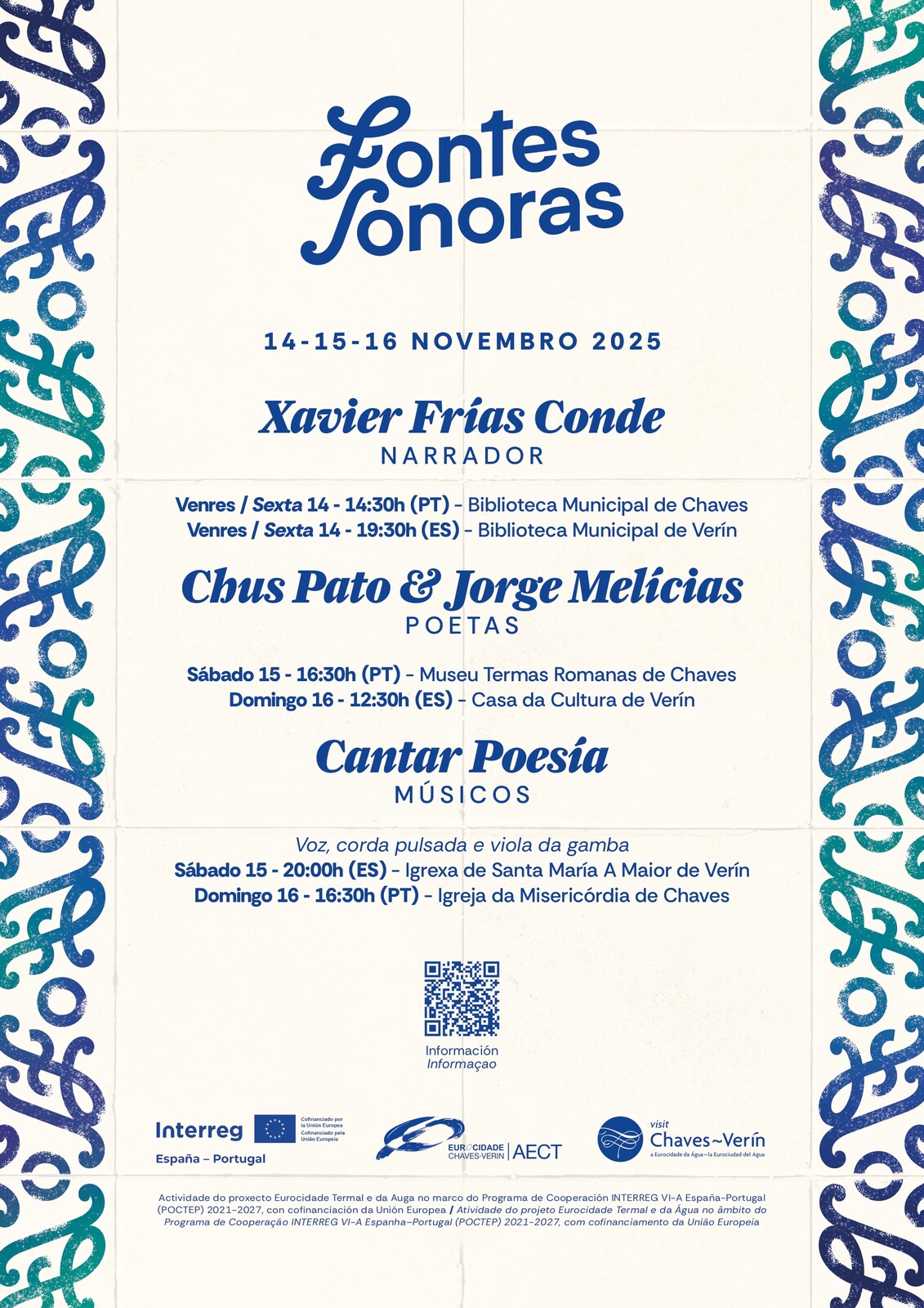 Em Verín, o festival decorre nos mesmos dias, com os artistas a apresentarem-se na Biblioteca Municipal, na Casa da Cultura e na Igreja de Santa María A Maior, reforçando o caráter partilhado e simbólico de um evento que une cultura, arte e território.
