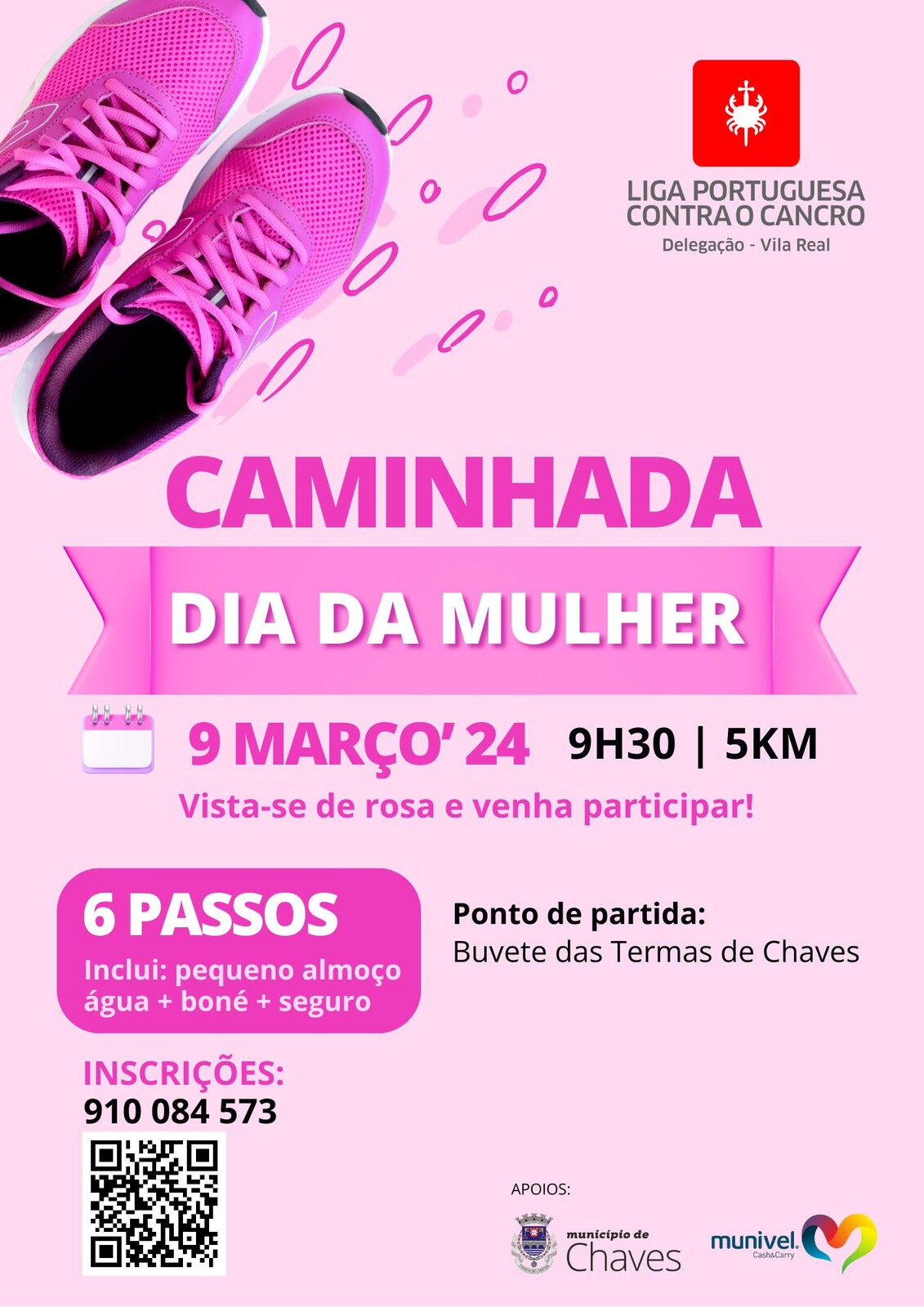 A Liga Portuguesa Contra o Cancro promove, no próximo sábado, dia 9 de março, pelas 09h30, uma caminhada solidária em Chaves, para assinalar o Dia Internacional da Mulher.