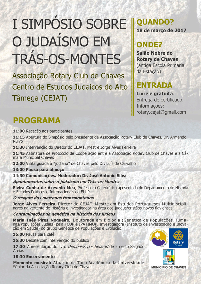 O Centro de Estudos Judaicos do Alto Tâmega (CEJAT), com sede em Chaves, juntamente com a Associação Rotary Club de Chaves e a Câmara Municipal, vão organizar o “I Simpósio sobre Judaísmo em Trás-os-Montes”, sendo o primeiro evento deste âmbito na região.