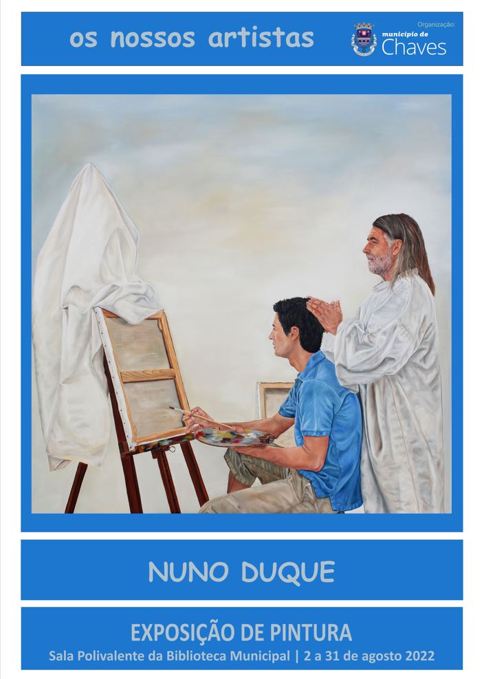 No âmbito das exposições mensais levadas a efeito na Sala Polivalente da Biblioteca Municipal e que integram o Ciclo “Os Nossos Artistas”, será inaugurada, no próximo dia 2 de agosto, pelas 17h30, a quinta mostra, desta vez de pintura, da autoria do jovem flaviense Nuno Duque. Organizada pelo Município, a exposição, com entrada gratuita, estará patente ao público até 31 de agosto.