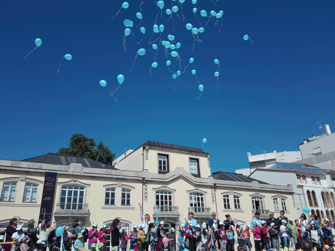 Foi com grande entusiasmo e alegria que as crianças dos estabelecimentos de ensino locais se juntaram à iniciativa e deliraram com as pinturas faciais, bolas de sabão, que percorriam o Largo General Silveira, bem como no final com a grande largada de balões azuis.