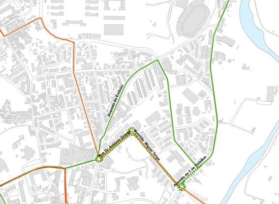 - A linha 2 estará condicionada no troço da Av. do Estádio e Av. Irmãos Rui e Garcia Lopes, sendo que, alternativamente, o percurso será efetuado pela Av. Miguel Torga e Av. Dr. António Granjo.
