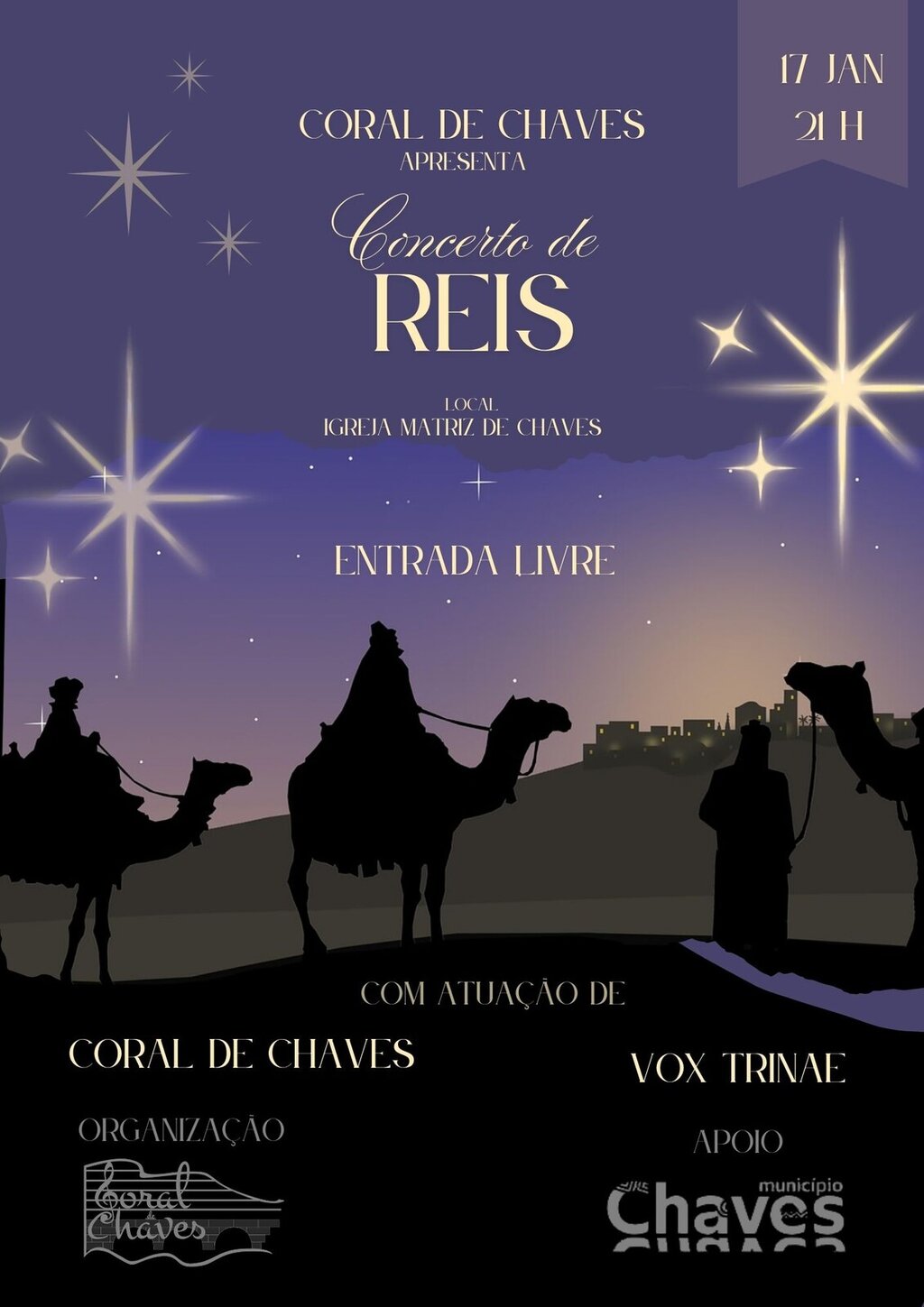 A Igreja Matriz acolhe, no próximo sábado, dia 17 de janeiro, pelas 21h00, o Concerto de Reis pelo Coral de Chaves, iniciativa que assinala a abertura da 33ª temporada musical deste grupo.