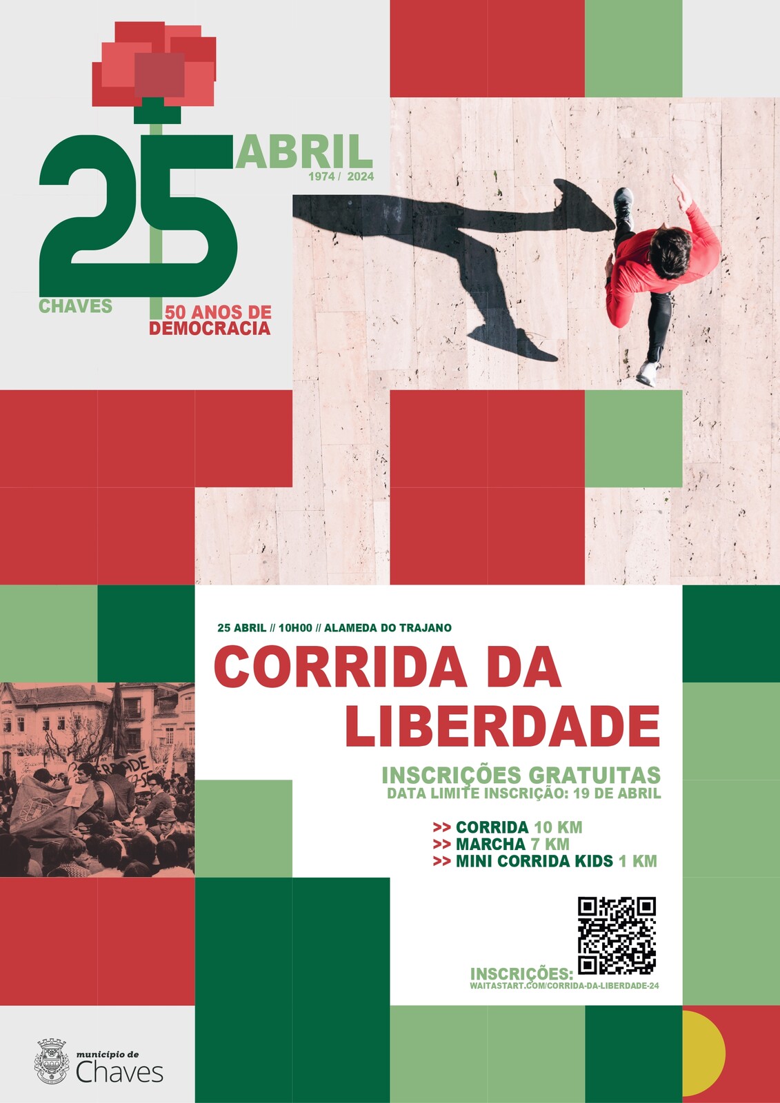 Integrada nas comemorações do 50º aniversário do 25 de Abril, o Município promove a tradicional Corrida da Liberdade, com inscrições prévias e obrigatórias até ao dia 19 de abril.