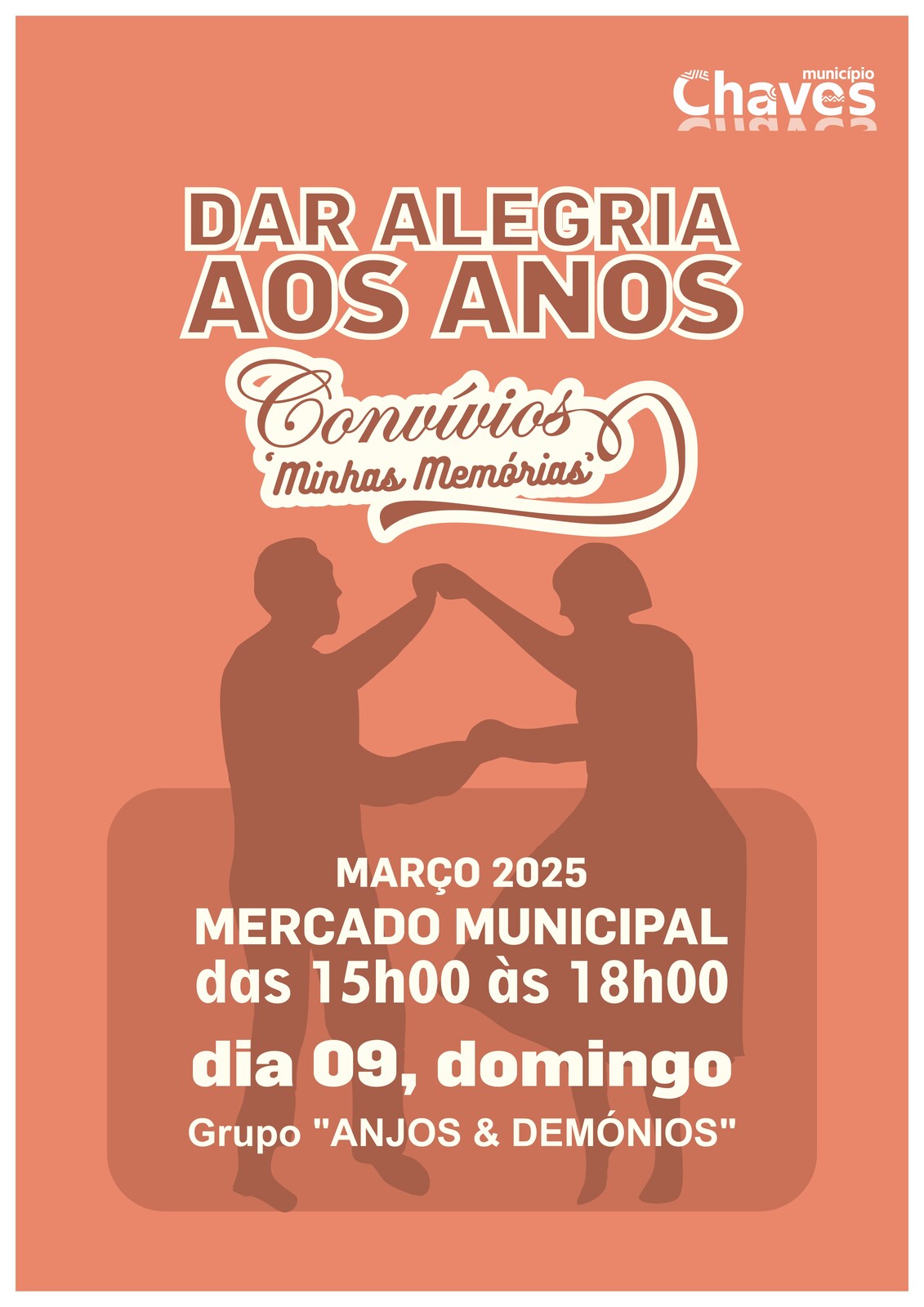 O Município de Chaves promove mais um convívio "Dar Alegria aos Anos", organizado sob o mote “Minhas Memórias”, no próximo dia 9 de março, entre as 15h00 e as 18h00, no Mercado Municipal.