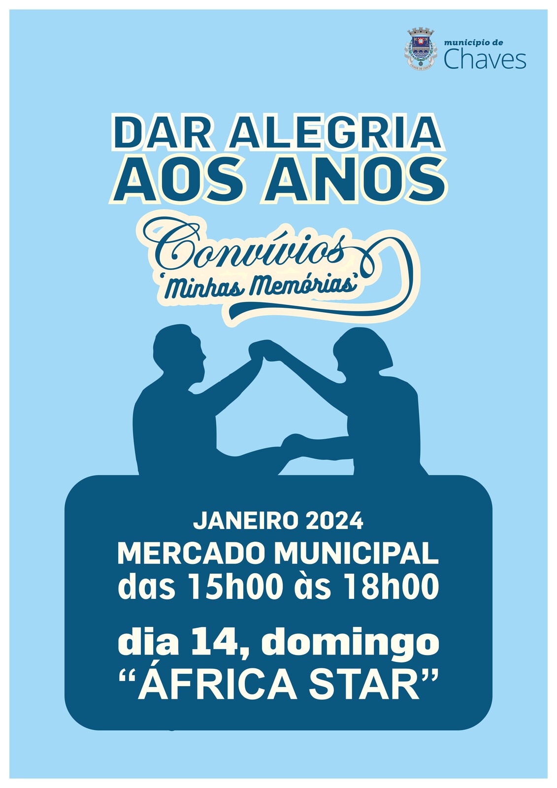 O Município de Chaves promove mais um convívio "Dar Alegria aos Anos", organizado sob o mote “Minhas Memórias”, no próximo dia 14 de janeiro, entre as 15h00 e as 18h00, no Mercado Municipal.
