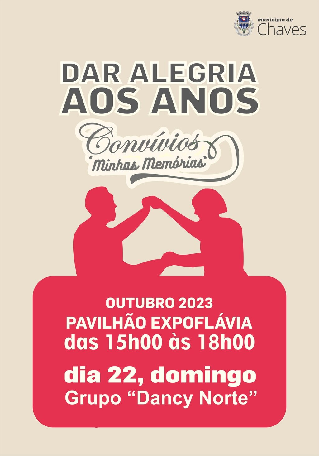 O Município de Chaves promove mais um convívio "Dar Alegria aos Anos", organizado sob o mote “Minhas Memórias”, no próximo dia 22 de outubro, entre as 15h00 e as 18h00, no Pavilhão Expoflávia.