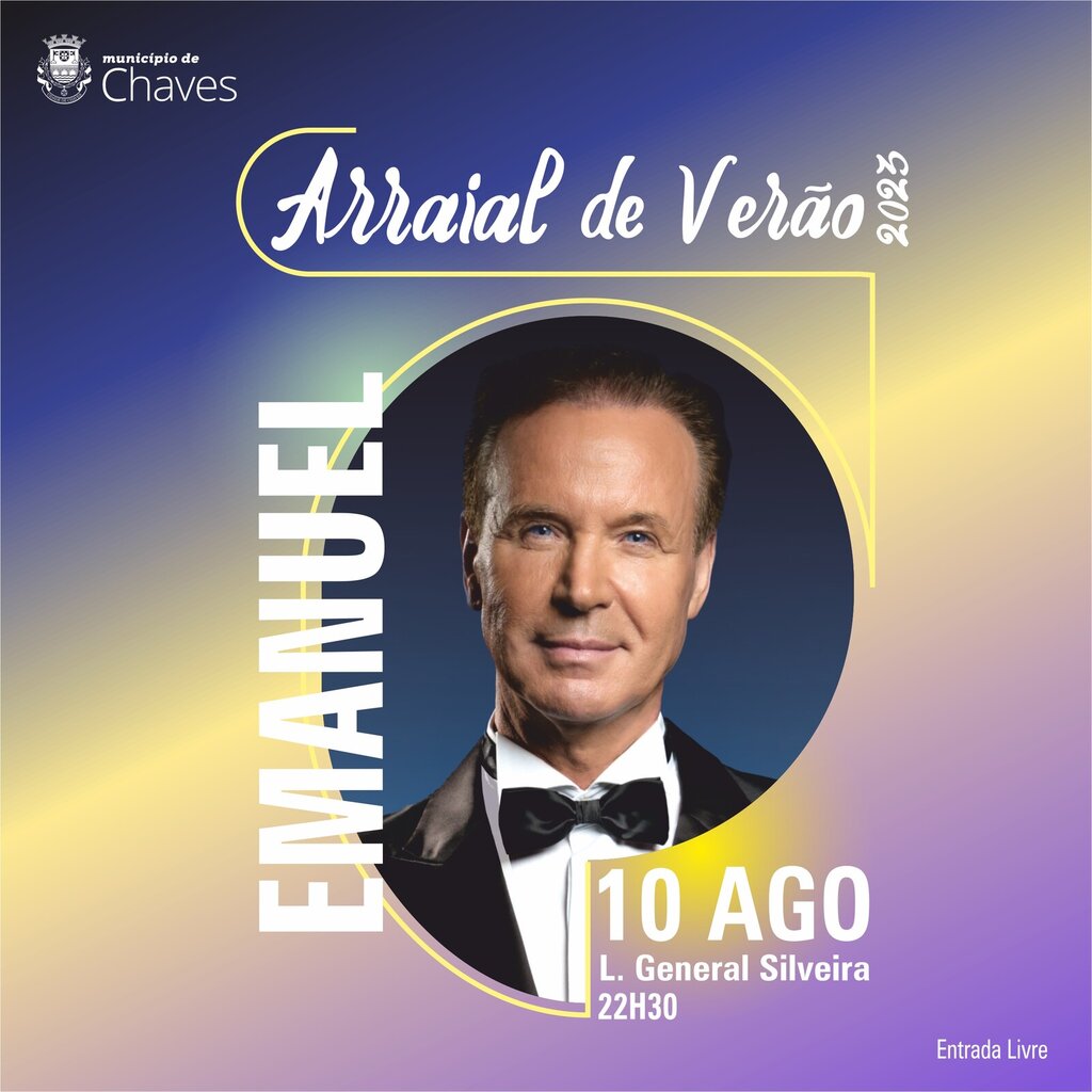 Chaves vai dançar ao “Ritmo do Amor” no tradicional Arraial de Verão, com a atuação do cantor português Emanuel, na próxima quinta-feira, dia 10 de agosto, pelas 22h30, no Largo General Silveira.