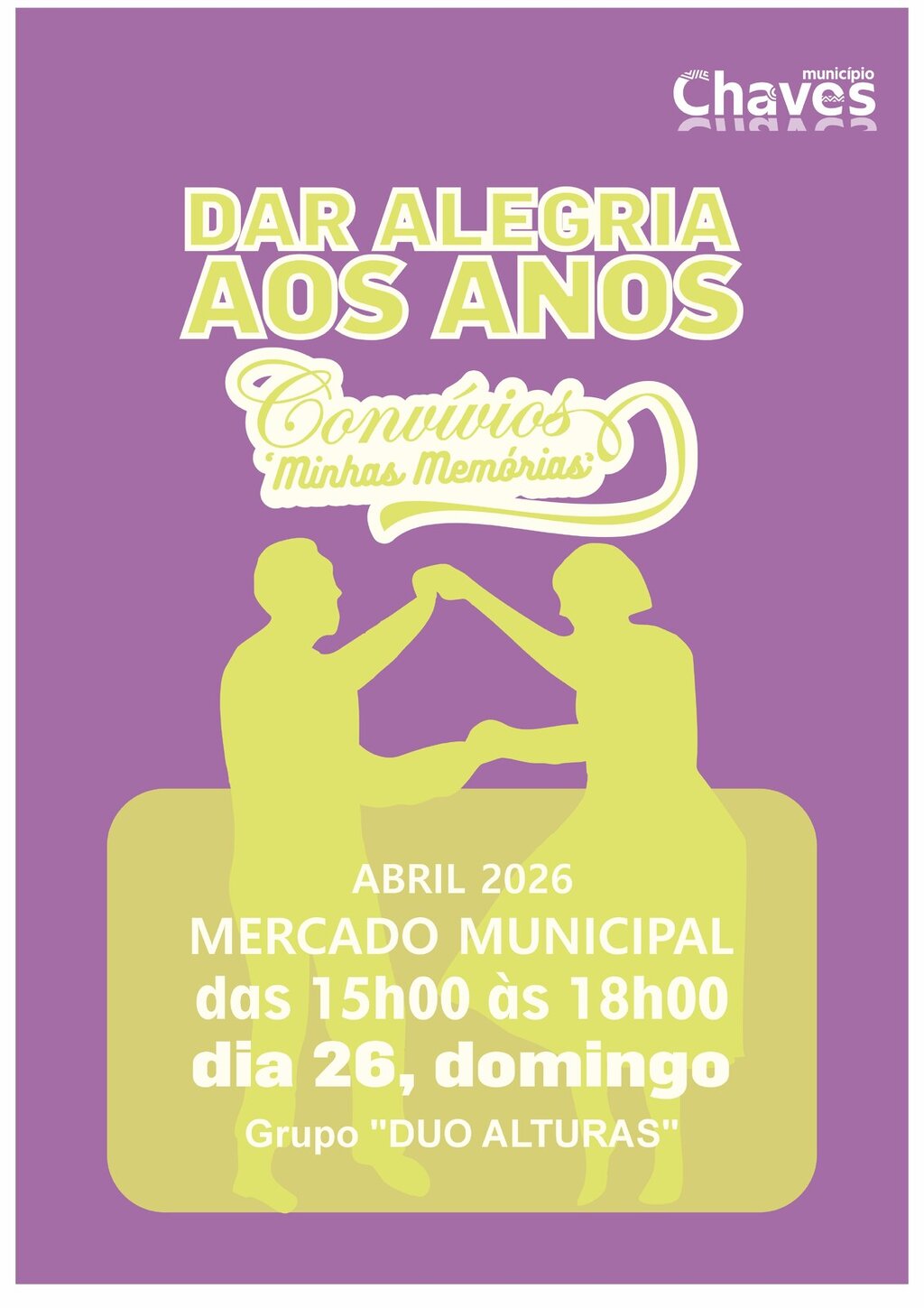 O convívio quinzenal municipal “Minhas Memórias” está de regresso no próximo domingo, dia 26 de abril, no Mercado Municipal, no âmbito do projeto “Dar Alegria aos Anos". Já consolidada na comunidade, esta iniciativa promove momentos de encontro, partilha e valorização das experiências de vida da população sénior, incentivando simultaneamente o convívio intergeracional.