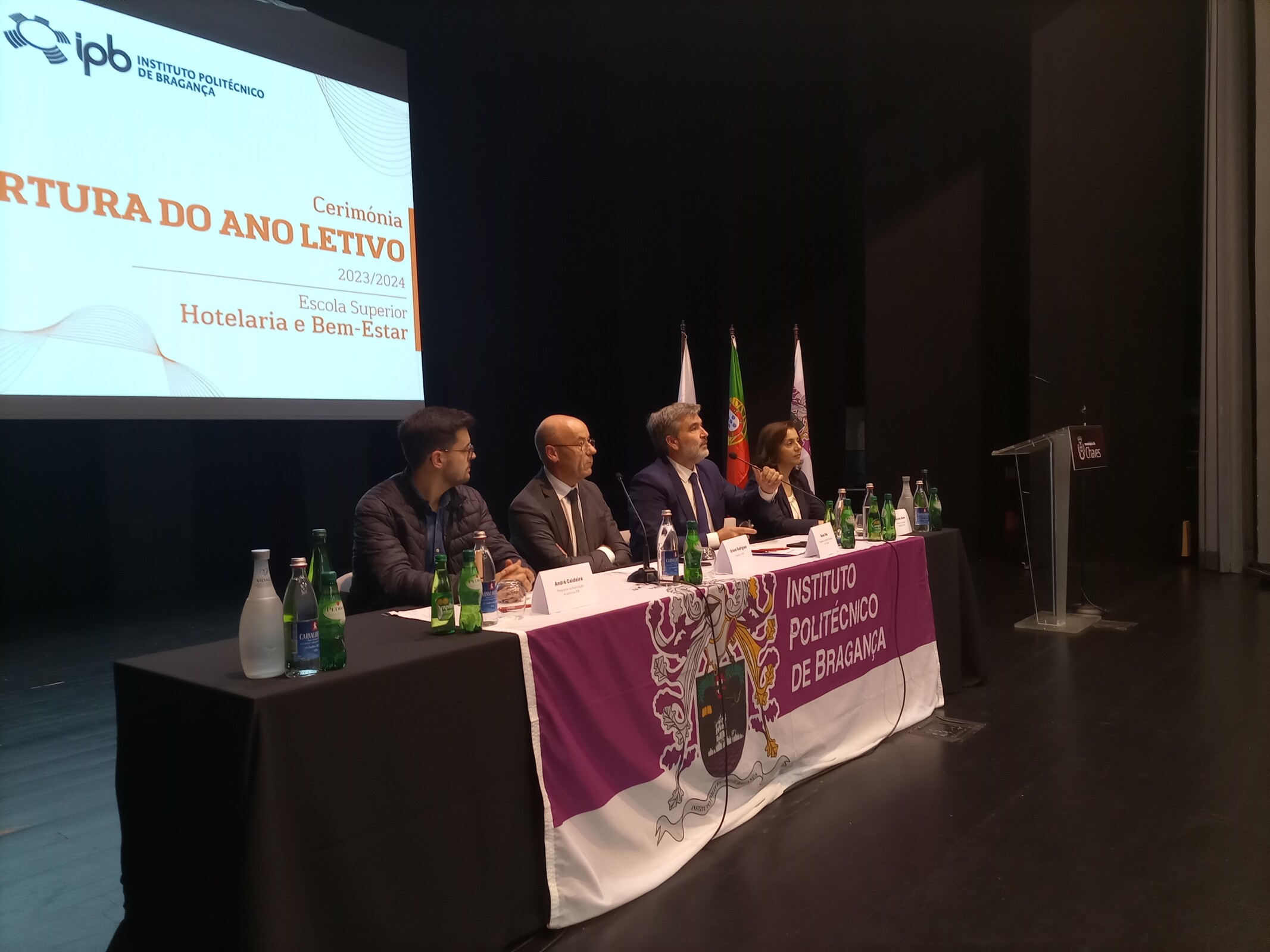 A sessão de abertura foi efetuada pelo Presidente da Câmara Municipal de Chaves, Nuno Vaz, pelo Presidente do Instituto Politécnico de Bragança, Orlando Alves, pela Presidente da Comissão Instaladora da EHB, Maria José Alves e pelo Presidente da Associação Académica, André Caldeira.