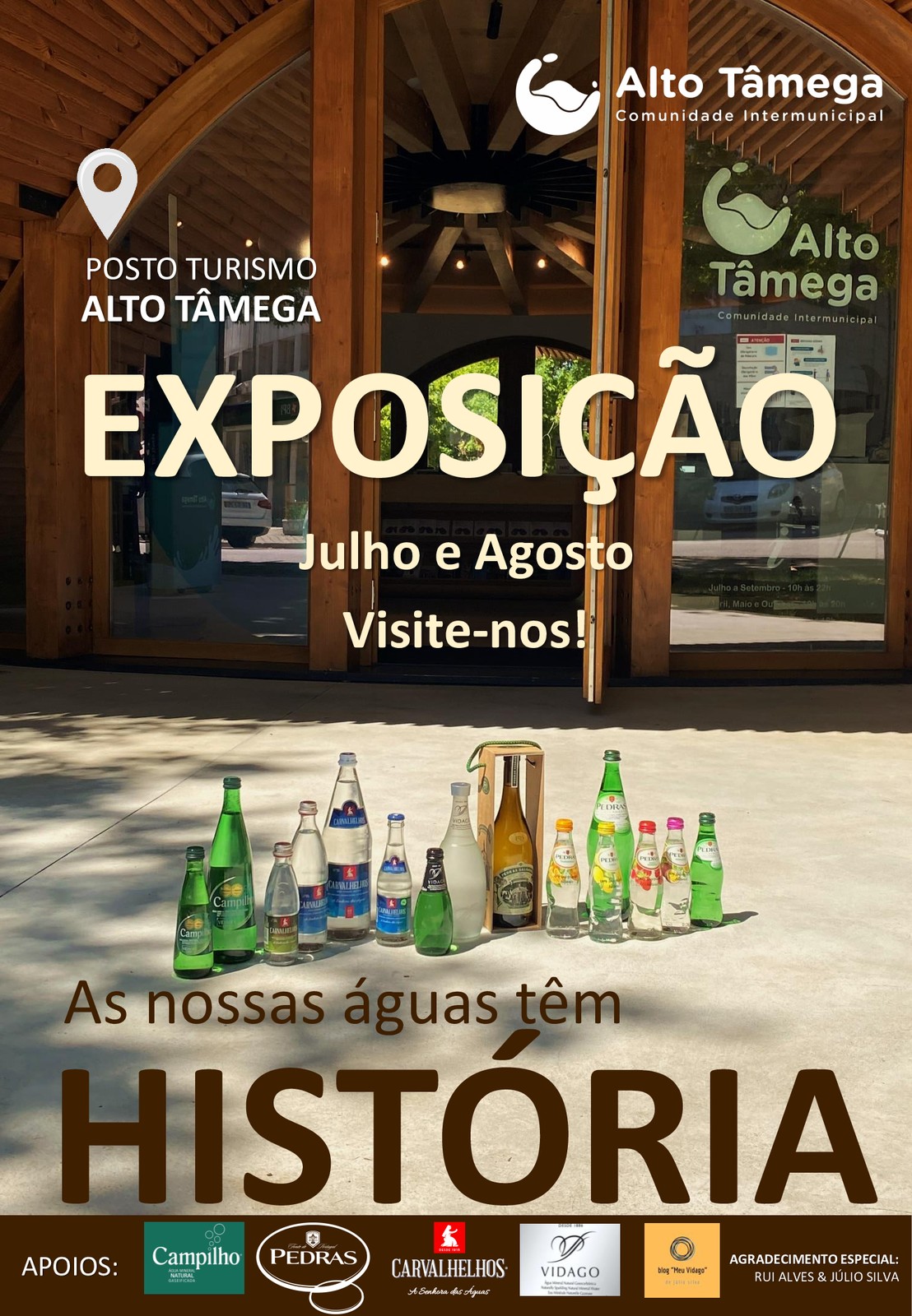 Durante os meses de julho e agosto, estará patente no Posto de Turismo do Alto Tâmega a exposição “As nossas Águas têm história”, uma iniciativa promocional que contempla a apresentação de um espólio histórico de garrafas Vintage das empresas de águas do Alto Tâmega e a distribuição gratuita de águas de Vidago, Pedras Salgadas, Campilho e Carvalhelhos aos visitantes, com participação especial dos colecionadores Júlio Silva e Rui Alves.