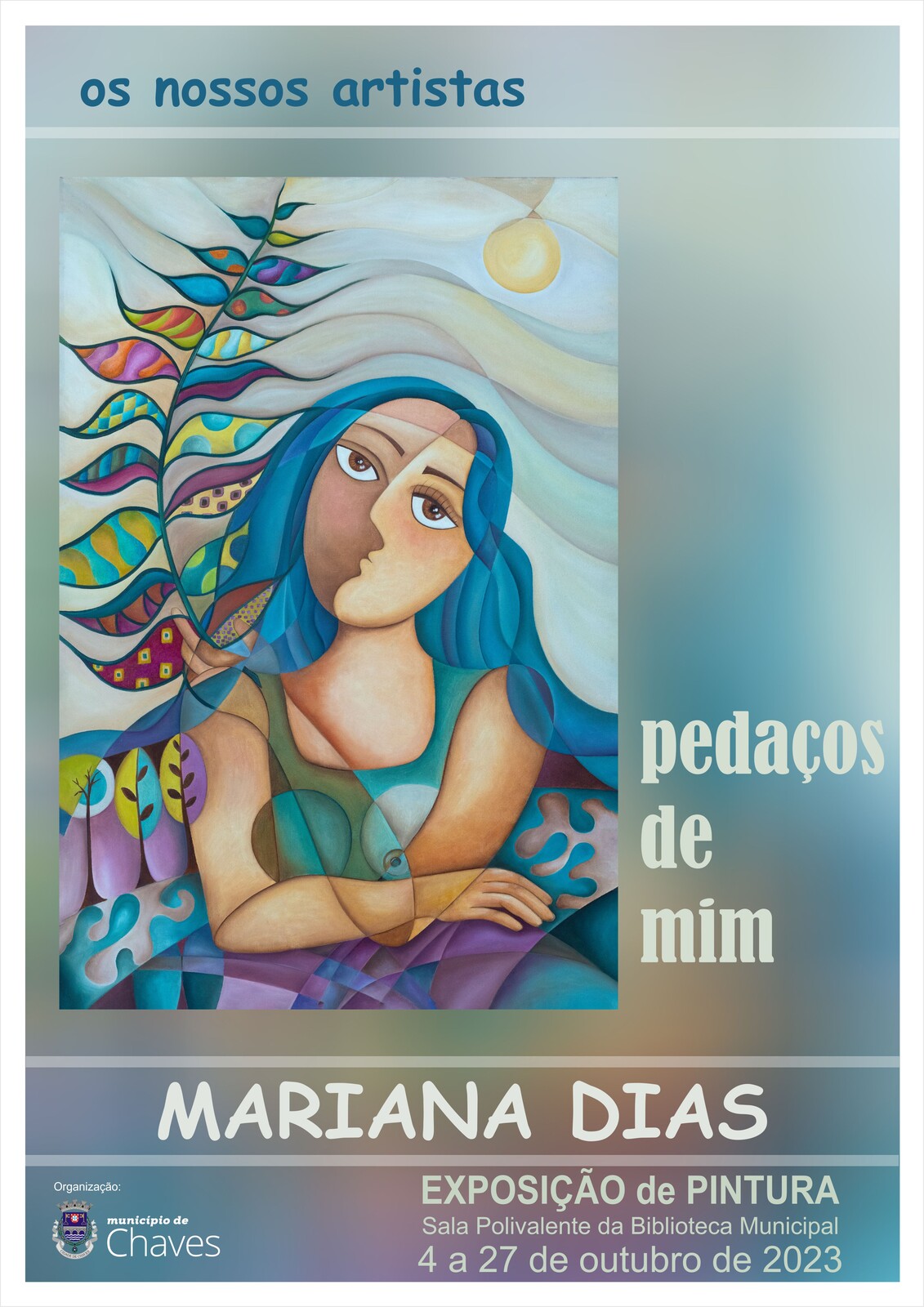 A Sala Polivalente da Biblioteca Municipal de Chaves recebe nova exposição de pintura, desta feita pela criatividade de Mariana Dias, e que vai integrar o ciclo “Os Nossos Artistas”. Com inauguração marcada para o próximo dia 4 de outubro (quarta-feira), pelas 17h30, a mostra intitulada “pedaços de mim”, estará patente ao público até ao dia 27 de outubro.