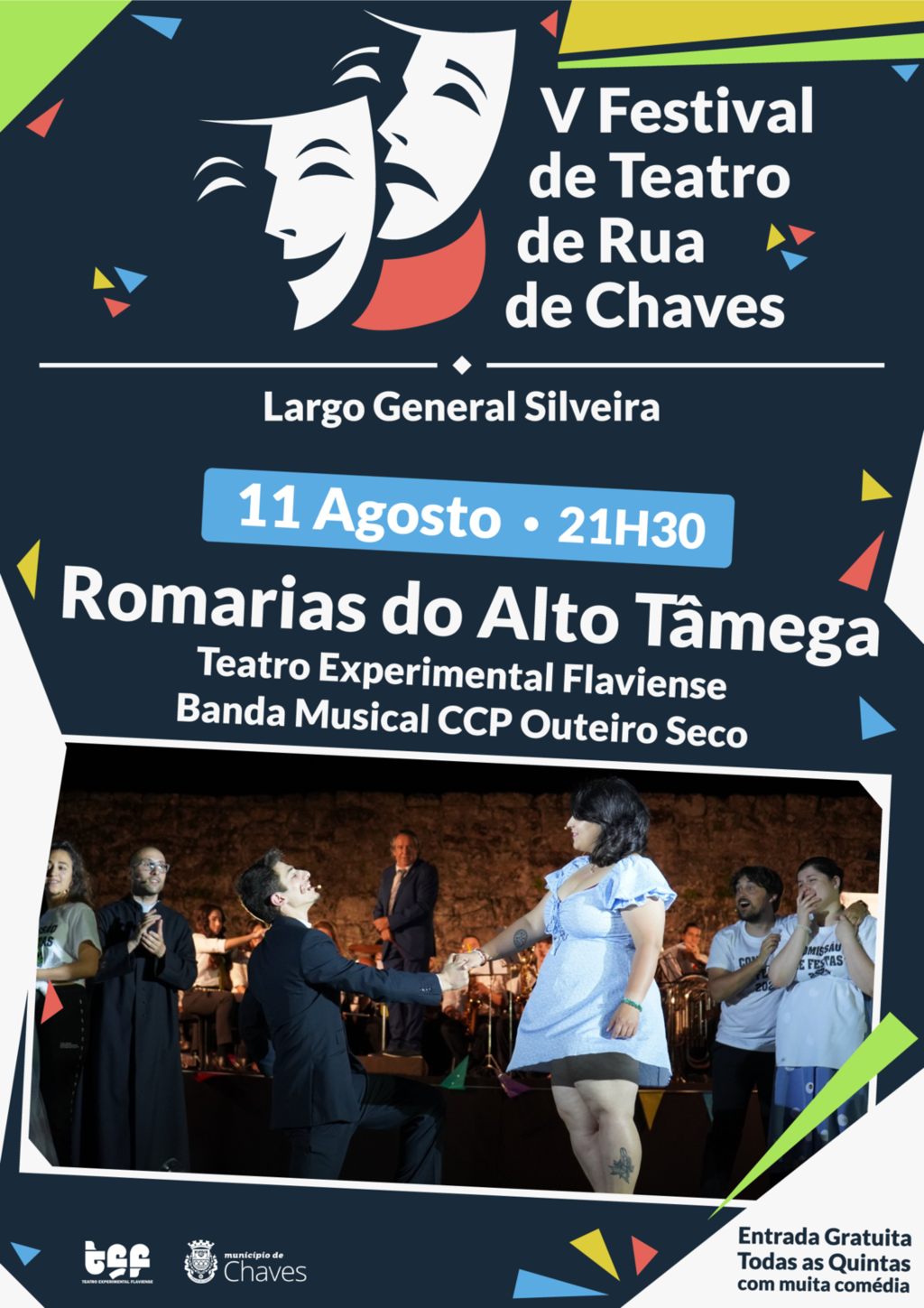 O “V Festival de Teatro de Rua” apresenta a peça “Romarias do Alto Tâmega”, no próximo dia 11 de agosto, pelas 21h30, no Largo General Silveira, produzida pelo Teatro Experimental Flaviense e Banda Musical da Casa da Cultura de Outeiro Seco.