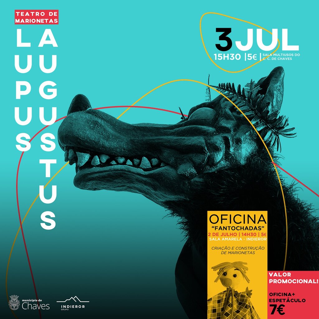 A Sala Multiusos do Centro Cultural de Chaves acolhe o Teatro de Marionetas “Lupus Augustus”, um divertido espetáculo que promete animar a tarde de miúdos e graúdos, no próximo domingo, dia 3 de julho, pelas 15h30.