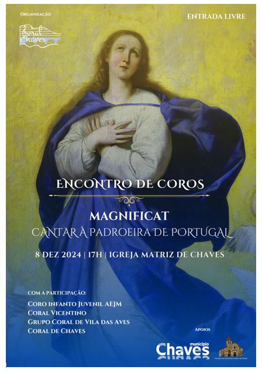 A Igreja Matriz de Chaves recebe, no próximo dia 8 de dezembro, domingo, pelas 17h00, o Encontro de Coros “Magnificat - Cantar à Rainha de Portugal”.