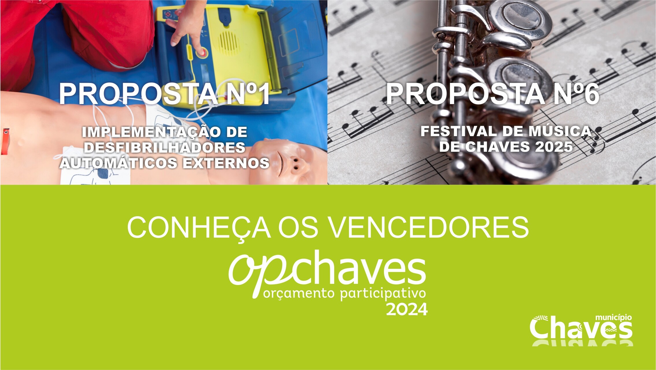 “Implementação de Desfibrilhadores” e “Festival de Música” venceram o OP Chaves 2024