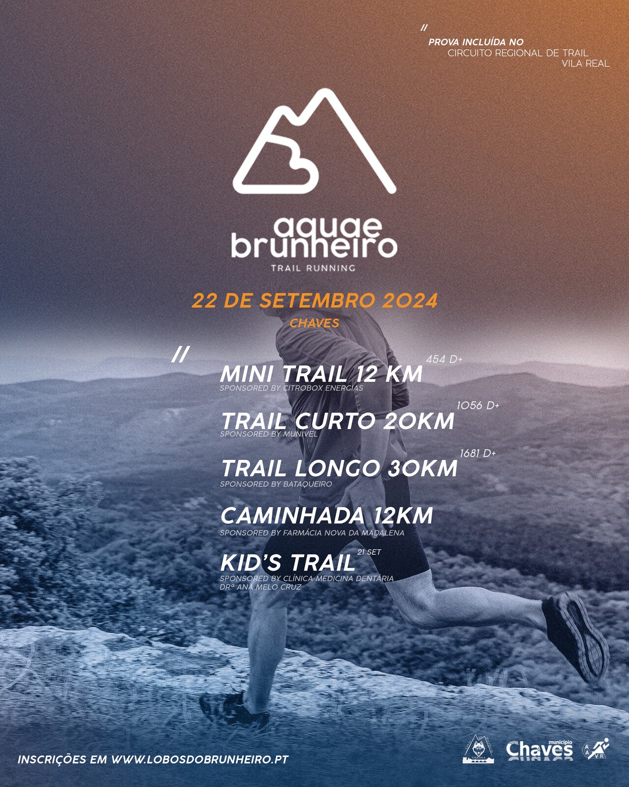 No próximo dia 22 de setembro, Chaves acolhe a maior aventura de trail running, o "Aquae Brunheiro Trail", com a Serra do Brunheiro como palco principal. Com início na aldeia de Vilar de Nantes e término na cidade de Chaves, este evento desportivo terminará em festa, num animado almoço convívio no Jardim Público. A iniciativa é organizada pela equipa Lobos do Brunheiro de Chaves, em parceria com o Município de Chaves, no âmbito do Protocolo de Colaboração de Desenvolvimento Desportivo estabelecido.