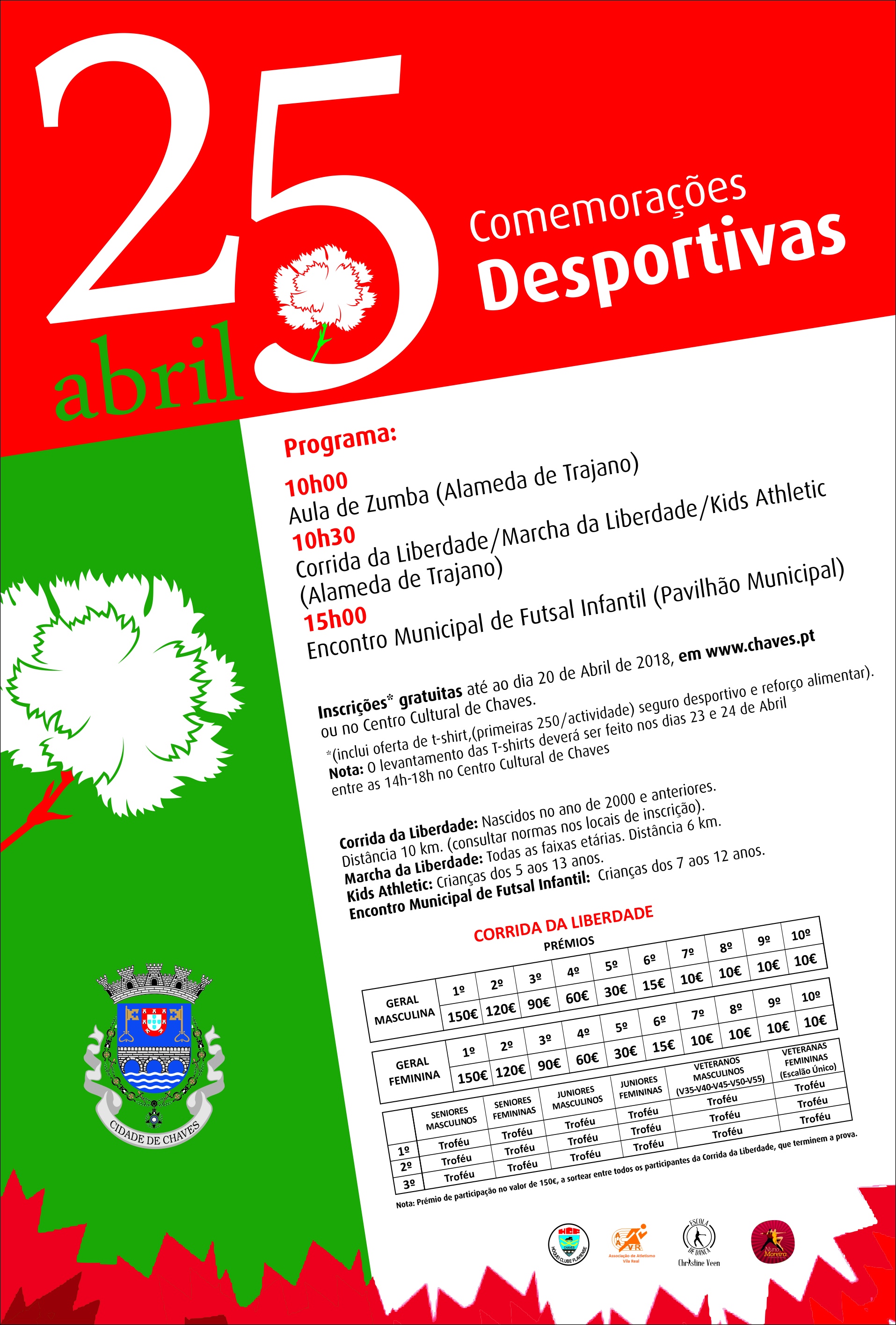 No âmbito das comemorações do 44ª aniversário do 25 de Abril, o Município promove a tradicional Corrida da Liberdade. As inscrições são obrigatórias e encontram-se disponíveis neste site, na categoria "Esteja Atento" e no Centro Cultural de Chaves, até ao dia 20 de abril.
