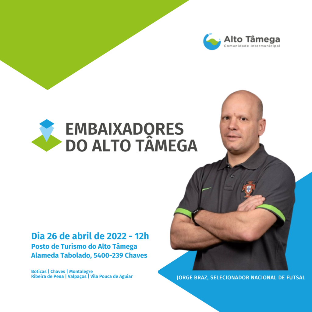 A Comunidade Intermunicipal do Alto Tâmega (CIMAT) vai atribuir ao Selecionador Nacional de Futsal, Jorge Braz, o título de Embaixador do Alto Tâmega, em cerimónia de homenagem que decorrerá no próximo dia 26 de abril, terça-feira, pelas 12h00, no Posto de Turismo do Alto Tâmega.