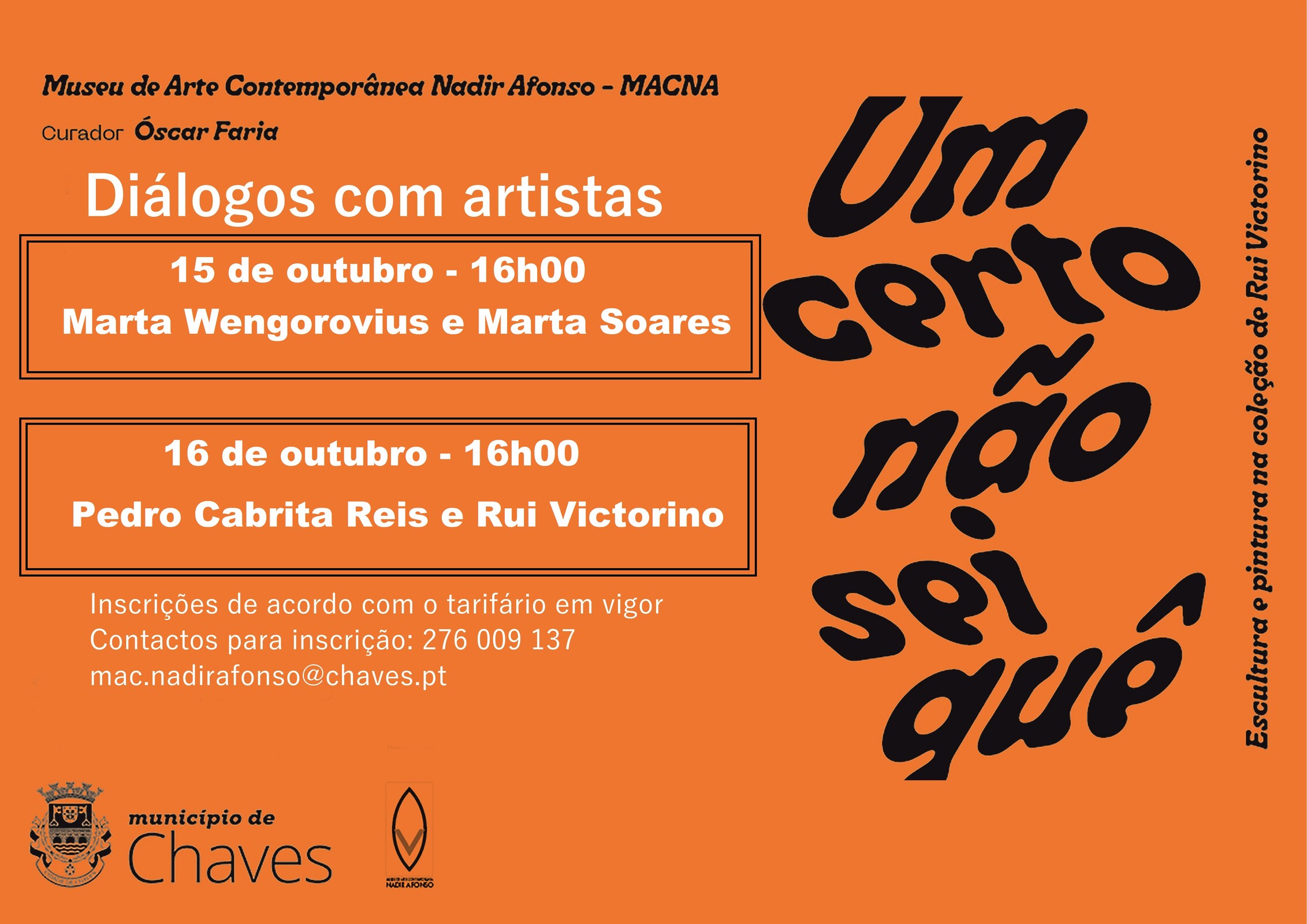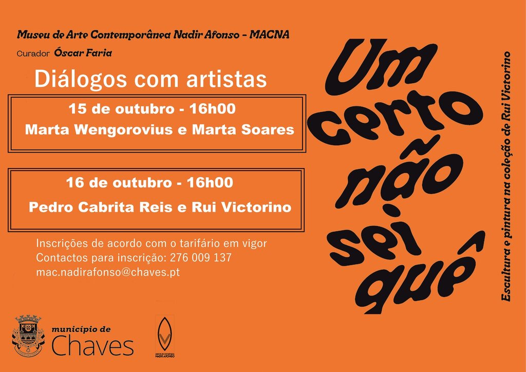 Decorrem este fim de semana, no Museu de Arte Contemporânea Nadir Afonso – MACNA, as duas últimas sessões do ciclo de conversas intitulado “Um certo não sei quê: diálogos com artistas”, com a participação dos artistas plásticos Marta Wengorovius e Marta Soares, no dia 15 de outubro, pelas 16h00, e Pedro Cabrita Reis, dia 16 de outubro, pelas 16h00.