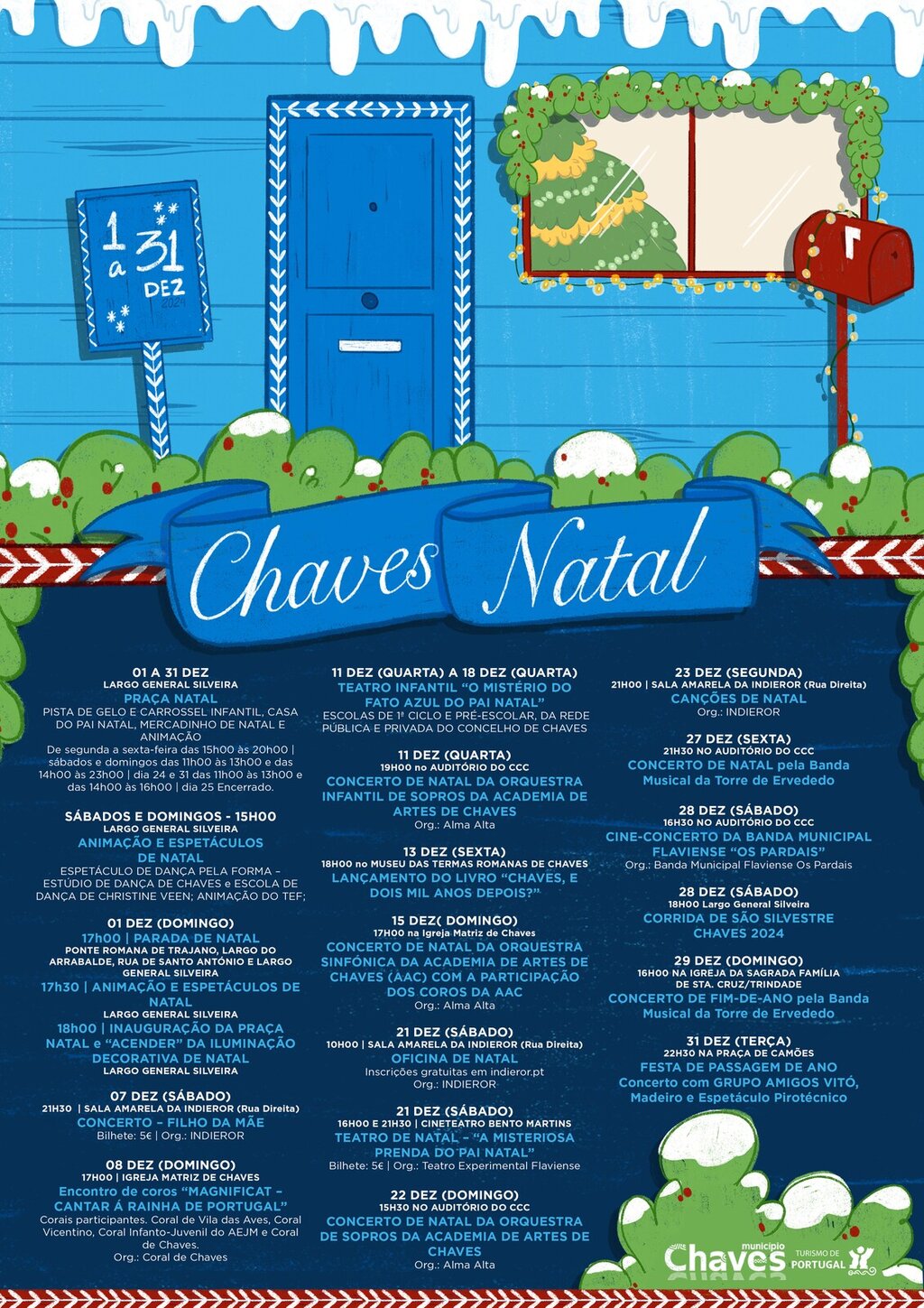 O programa da iniciativa “Chaves Natal” contempla ainda espetáculos de dança, concertos, encontro de coros, oficinas e teatro de Natal, assim como a tradicional Corrida de São Silvestre.