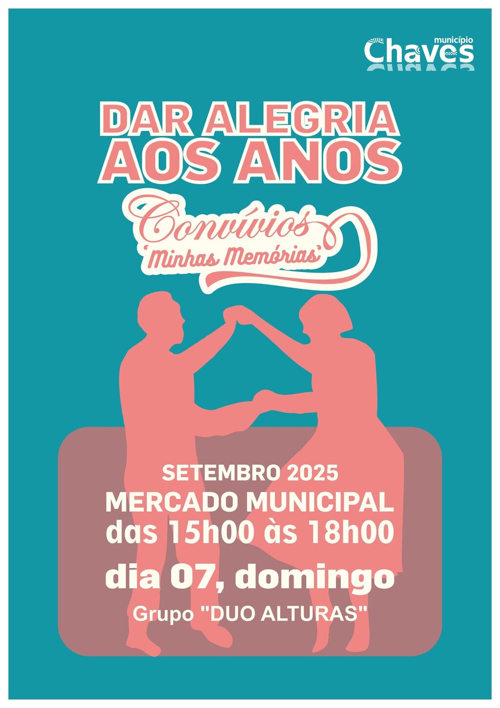 No próximo domingo, 7 de setembro, entre as 15h00 e as 18h00, realiza-se no Mercado Municipal de Chaves mais uma edição do encontro “Dar Alegria aos Anos”.